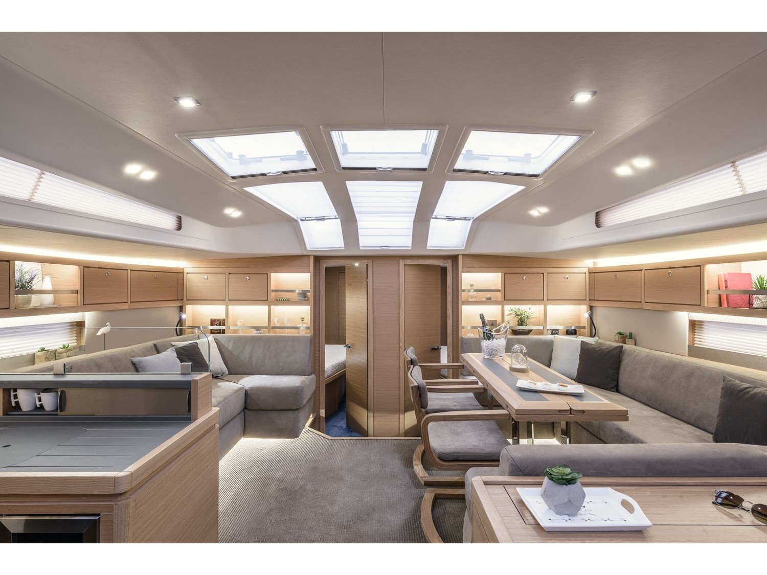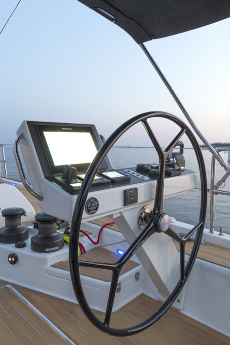 Carbon Steering Wheels, Espresso machine, Wine cooler, Outside sun beds, Targa hanger with full bimini sprayhood and lighting, Underwater lights, Bose music system, Hydraulic gangway with remote control, Autopilot, Binoculars, Charts, Electric Wind Speed Indicator & Tridata, GPS Chartplotter, Hand held compass, Navigation tools, Pilot books, Termometer, Barometer, Clock, VHF, Dingly with outboarder, Fire extinguishers, First aid kit, Flares, Fog horn, Harnesses, Horse shoe, Life jackets, Liferaft, Life ring, Mini Flashlights, Rescue Flashlights, Torch, 2 Refrigerators, Aircondition, BBQ in cockpit, bimini, Bowthruster, Electr.Toilet, Electric Winch, Generator, Inverter, Radar, Refrigerator in cockpit, 220V/12V plugs, cutlery and crockery, el. fridge, gas stove with oven, holding tank, hot water, Ball fender, Boat hook, Cockpit cushions, el. bilgepump, Electric Windlass, Fenders, gas bottles, Mooring lines, Shore power cable, spare fuel canister, Stern anchor, Swimming rope, Winch handle, Dishwasher, Teakdeck