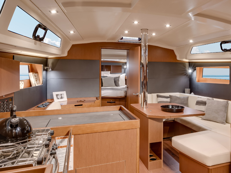 Battery charger and 220V shore supply, Bucket, Deck brush, Gas bottles, Swimming ladder, Water hose, Anchor ball and cone, Anemometer, Autopilot, Barometer - clock, Bilge pump, Binocular, Blunkets, Boat hook, Boats papers, Diving mask, Emergency rudder, Engine spare parts, Fire extinguishers, First aid kit, Flashlight, Fog horn, GPS, Hand compass, Horseshoe buoy with line and light, Life jackets for all guests on board, Life raft, Mooring lines, Navigation ruler, Radar reflector, Tool box, Water pilot