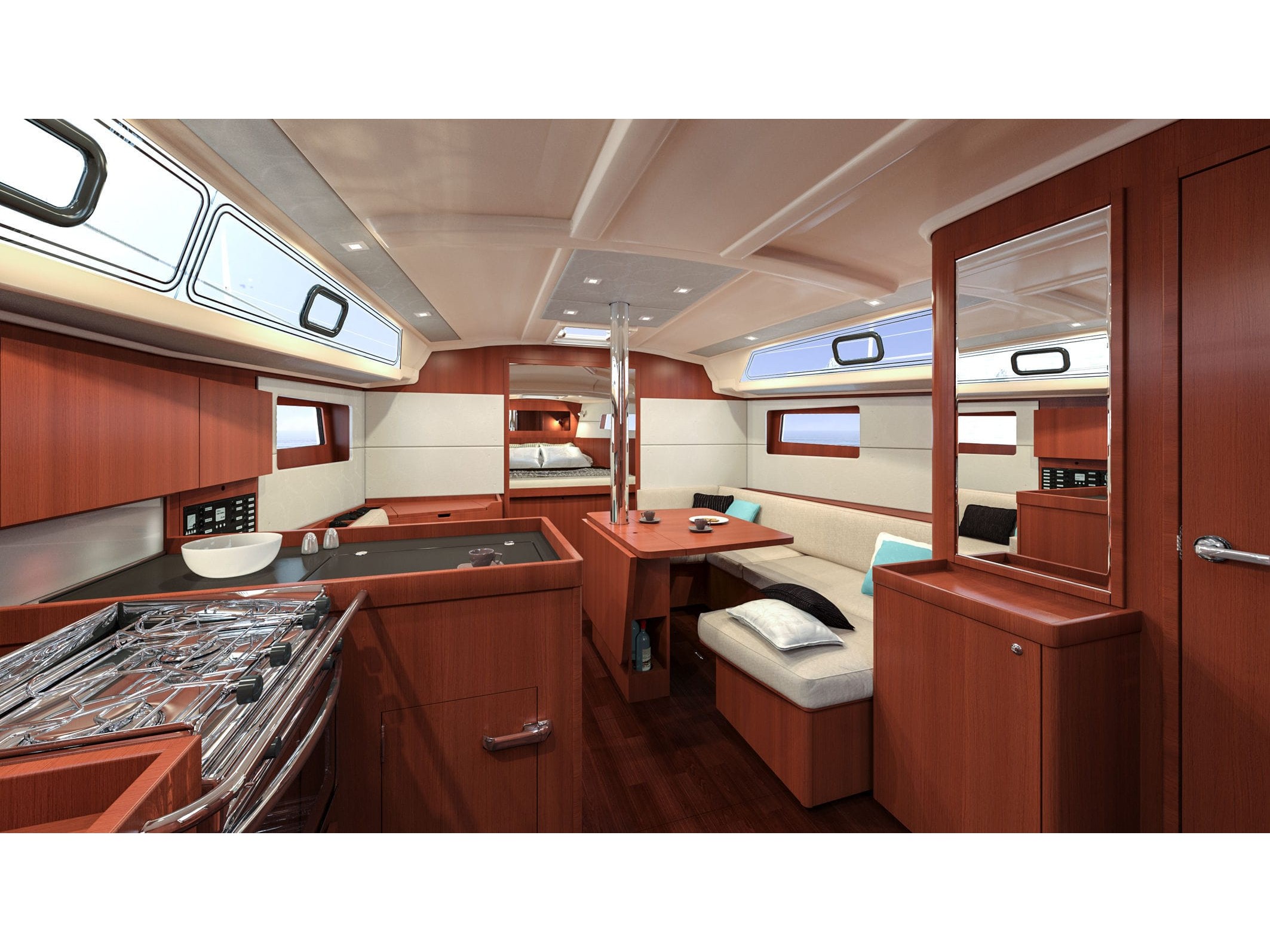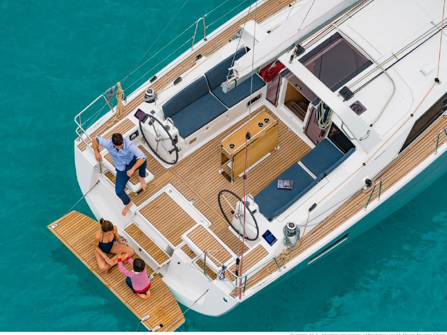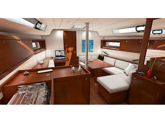 Comfort package C, 220V shore power supply (30m), Adriatic Sailing flag, Aft shower, Anchor and chain, Awning, Baloon fender - aft, Bathing platform and ladders, Bimini top, Boat hook, Chain for spare anchor (6m), Cockpit cushions, Croatian flag, Dinghy, Electrical windlass, Fenders, Gangway, Glass windshield, Outboard mount, Padlock for outboarder, Spare anchor, Sprayhood, Teak cockpit, Teak laid seats, Brush for interior, Bucket, Container, Deck brush, Deck brush with long handle, Diesel canister (20l), Engine oil - spare (4l), Foot pump, Fuel mixture canister (5l), Funnel, Leather gloves, Snorkeling equipment, Spare anchor, Sponge, Water canister (20l), Water hose, Winch handle - long, Winch handle - short, Gas cooker with oven, Sea water, 220V plug, Barometer, Battery charger, Derusting spray, Dinghy repair kit, Mobile phone, Mobile phone charger 12V, Mobile phone charger 220V, Radio CD player/MP3, Speakers in saloon and cockpit, Autopilot, Coast lights guide, Compass, DSC station, Engine hour meter, Fresh water level instrument, Fuel level instrument, GPS Chart plotter, Nautical charts, Nautical dictionary - 6 languages, Navigation set, Pilot book, Radio service book, VHF station, Voltmeter, Wind instrument, Yacht manual, Axe, Bailer, Bilge liquid level high alarm, Bilge pump - electric, Bilge pump - manual, Binoculars, Cable cutters, Emergency tiller, Engine tool set and spare parts box, First aid box, Floating smoke signal, Fog horn, Gas fog horn, Handbearing compass, Horseshoe w. rescue line, Horseshoe w. rescue line and floating lifebouy light, Matches and lighter (watertight), Radar reflector, Safety box, Safety harnesses - adults, Sea anchor, Torch, Furling Genoa, Furling mainsail, Radar, new