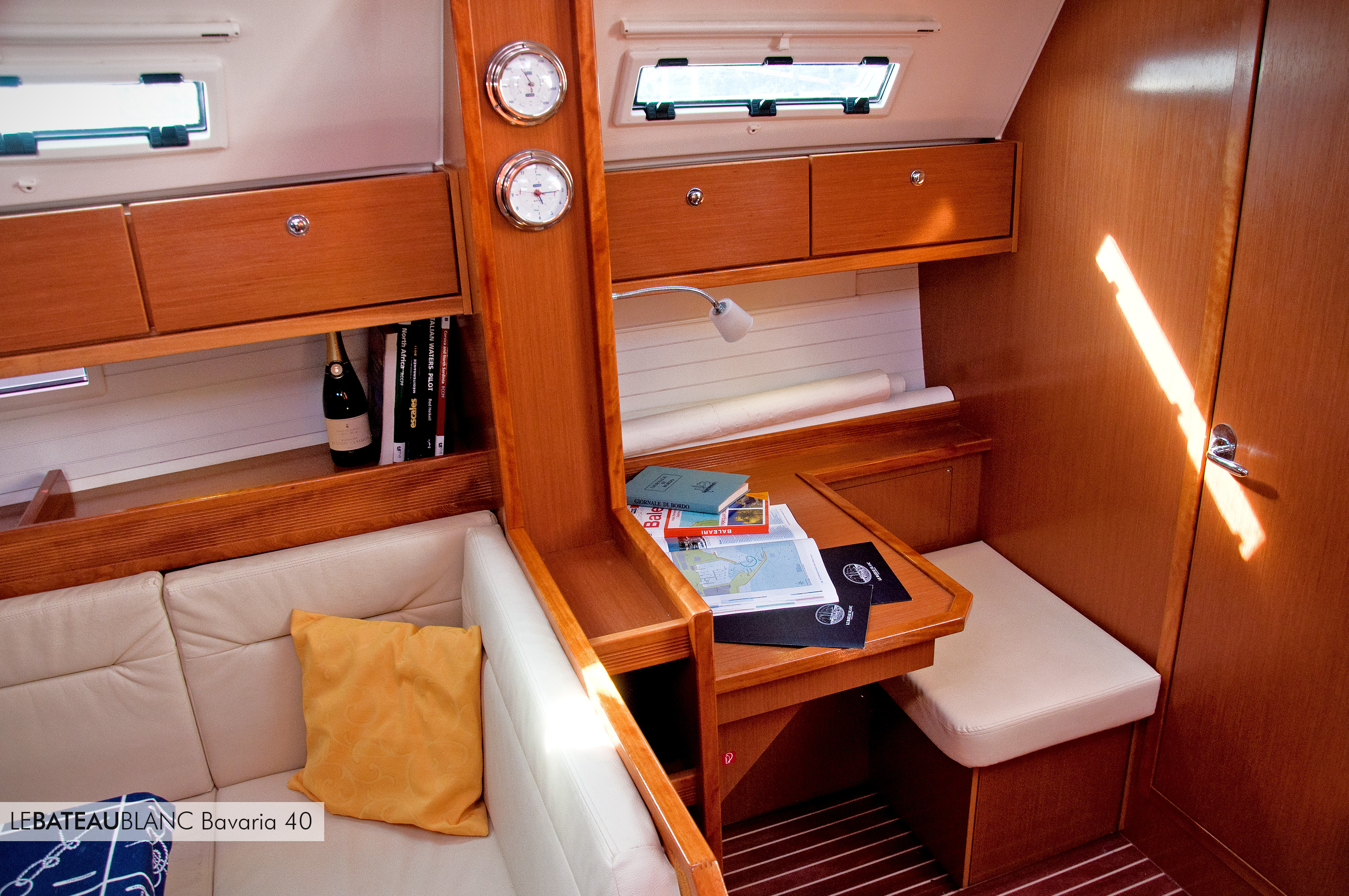 220v electric cable, Autopilot, Battery charger, Bimini, Bow thruster, Cartographic GPS, CD player, Cockpit shower, Cockpit table, Cooker with oven, Ecosounder, Electric windlass, Fridge, Furling genoa, GPS/plotter, Hot Water, Inverter 12/220, Mainsail with lazy bag, Manual WC, Safety equipments, Sounder, Speedometer, Sprayhood, Stereo, tender, VHF, Wind instruments, Double steering weel