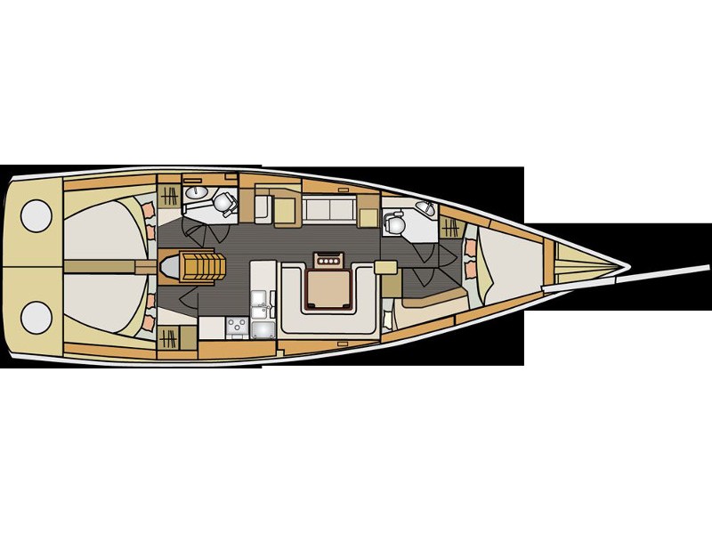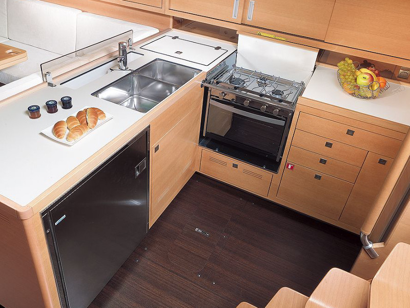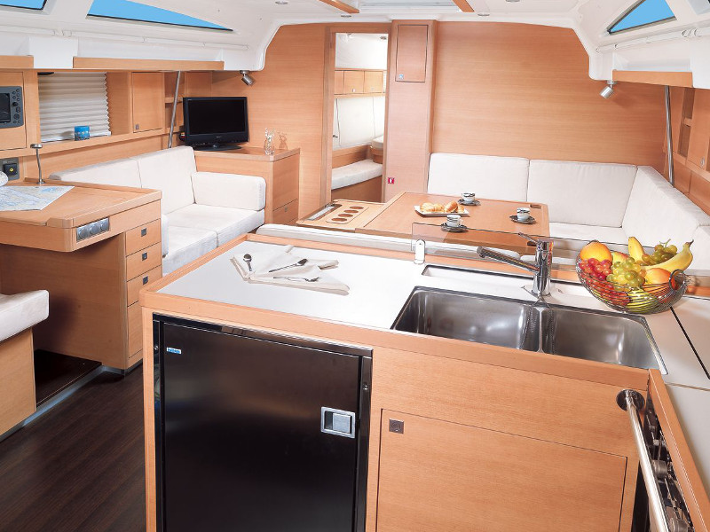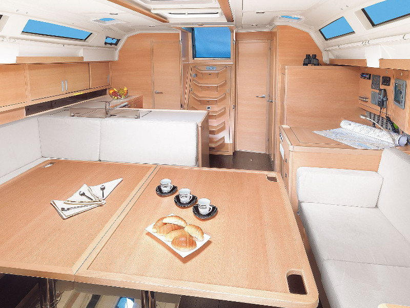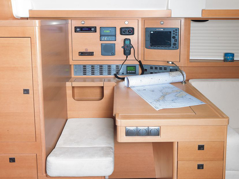 Autopilot, Barometer, Binoculars, Boat cleaning kit, Charts, Clock, Compass, Dinghy, Dock cable connection, Electric bilge pump, Electric windlass, Fuel container, Full battened main sail, Furling genoa, GPS plotter, Lazy bag, List of lights and headlights, Manual bilge pump, Mooring equipment, Oars, Permision to navigate in Croatia, Pilot book, Portable compass, Pump for dinghy, Steering wheel, VHF radio, Winch handles, Wind indicator, Life line, Bow thruster, Inverter, Radar deflector, Blankets, Cockpit cushions, Gangway, Kitchen equipment, Linens, Oven and 2 burner stove, Pillows, Radio with CD player, Shower outside, Sprayhood, Swimming ladder, Towels, Portable VHF radio, Heating