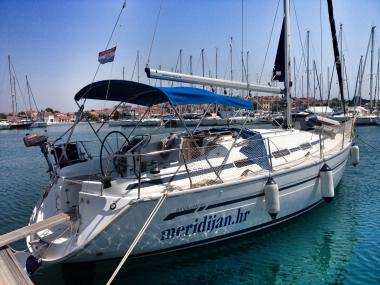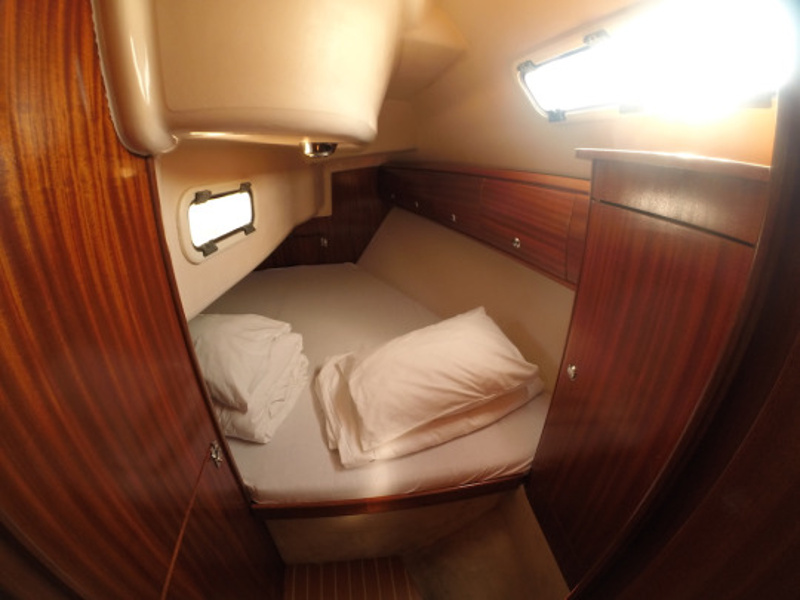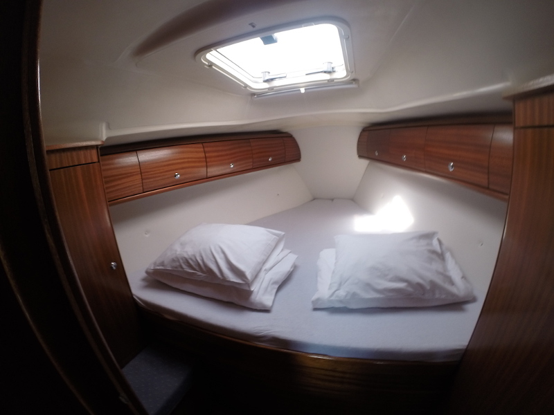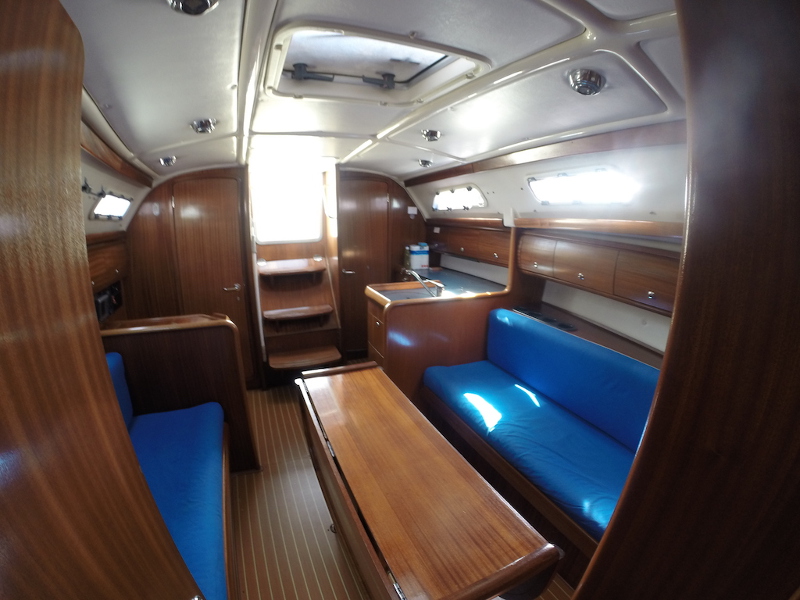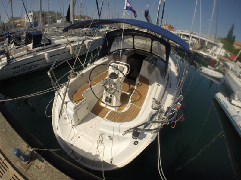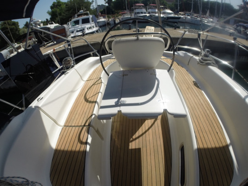 Autopilot, Bimini, Cockpit shower, Cockpit table, Electric windlass, Flag, Sprayhood, Tri data, Radio CD player, Coocker with oven, Coocking set, Kitchen set (paper towels, detergent, sponge), Plates, cups, glasses, cutlery, Gas bottle, Ropes, Spare anchor + 10m of chain, Hot water, Electrical instrument panel, First aid kit, GPS Chartplotter, Nautical charts, Pilot book, VHF, Yacht documents, Yacht keys, Clock, barometer, thermometer, Echo sounder, Life jackets, Pillows, blankets, bed linen, Safety belts, Teak in cockpit, Furling genoa, Furling main sail, Heating