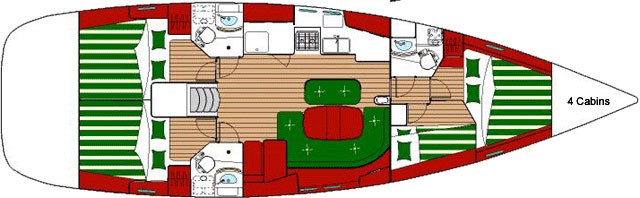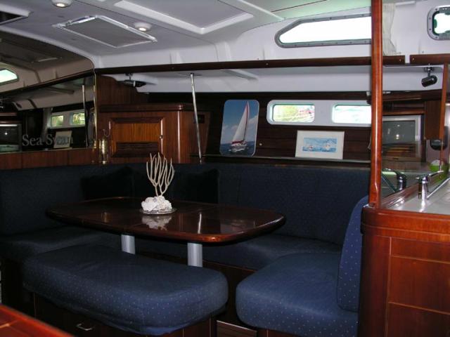 Bow thruster, 12 and 220 V plugs, Autopilot, Bimini, Blankets, Cooker with oven, Deck shower, Dinghy, El. cable 220 V, Electric fridge, Electric windlass, Full baten main sail, Furling genoa, GPS, Hot water, Log/Speedo, Pillows, Radio CD, Sprayhood, Teak deck, VHF, Weather station, Windspeed indicator