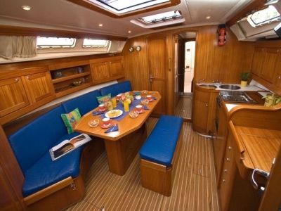 Hot water, Refrigerator, 12V plug, Cardplotter, Pots and pans, Shower on deck, Complete navigation equipment, Electric windlass, Complete security equipment, UKW radio, Sunsail, Gas cooker with oven, Autopilot, GPS, Permits (transit log), Radio / CD, Bimini top, Lazy Bag, Sails, Rollgenoa