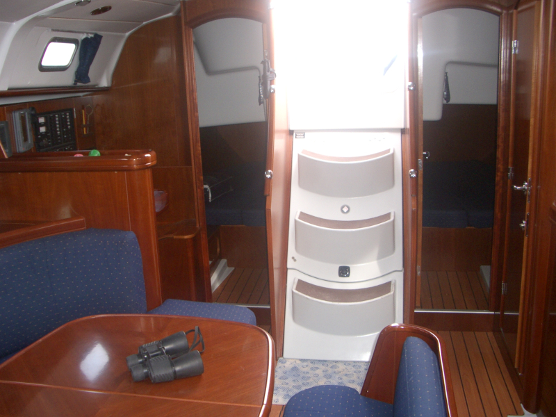 Radio, Autopilot, Bimini, Charge Battery and Shore current 220 Volt., Deck shower, Dinhgy, Fridge, Full batten main sail, Furling genoa, GPS + Chart-Plotter, Hot water, Log and Echo sounder, Loudspeaker stereo in cokpit, Safety equipment, Sprayhood, VHF, Wind direction and speed, Windlass elect., GPS in cockpit