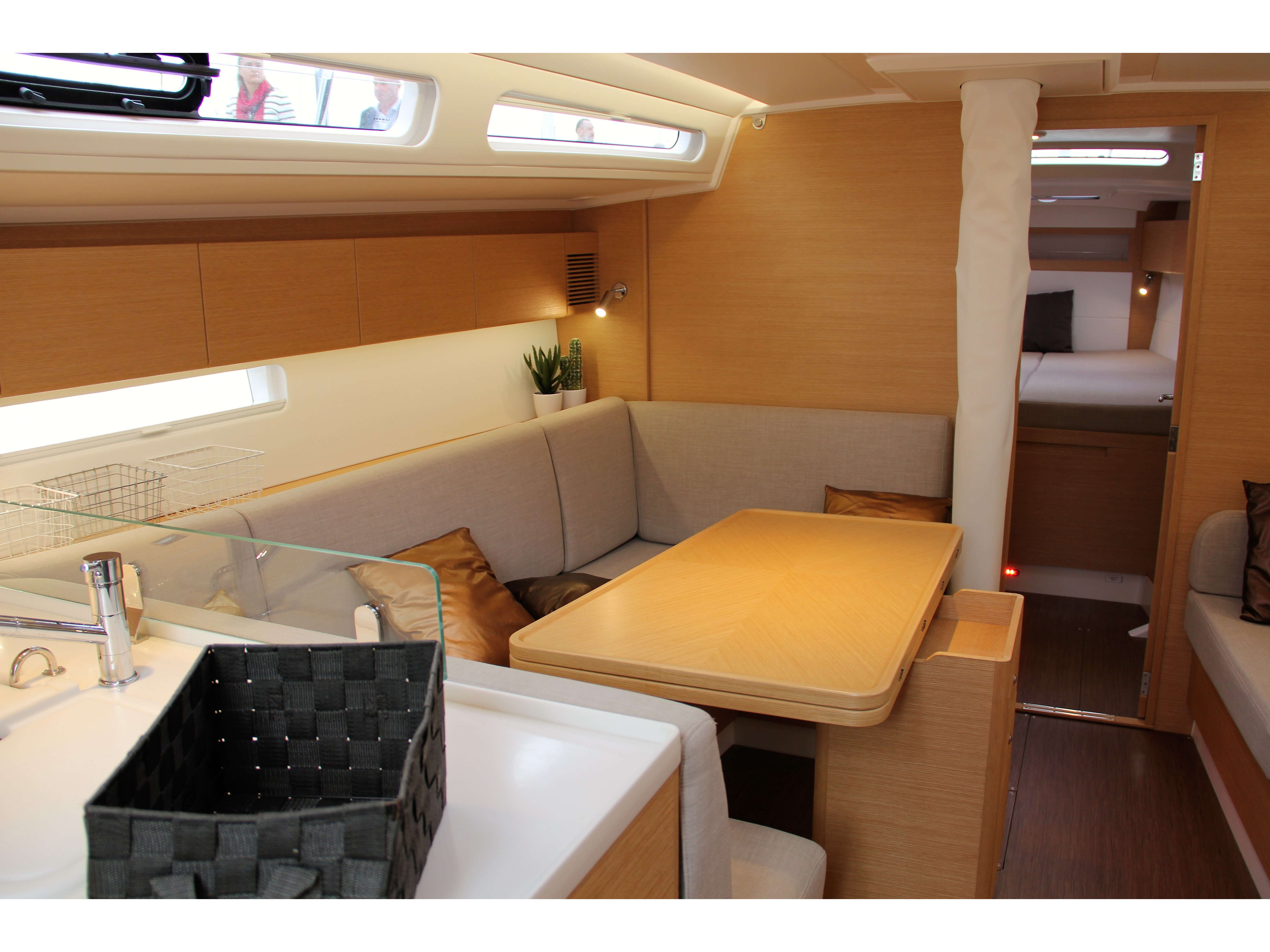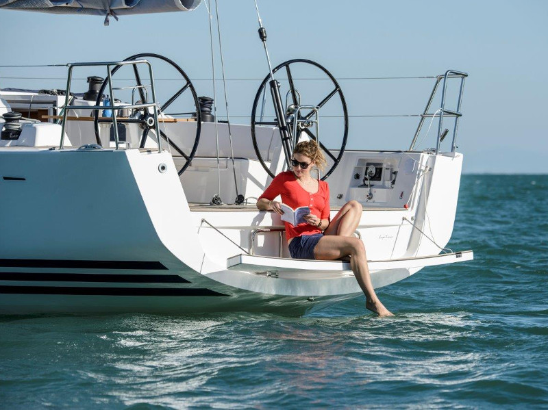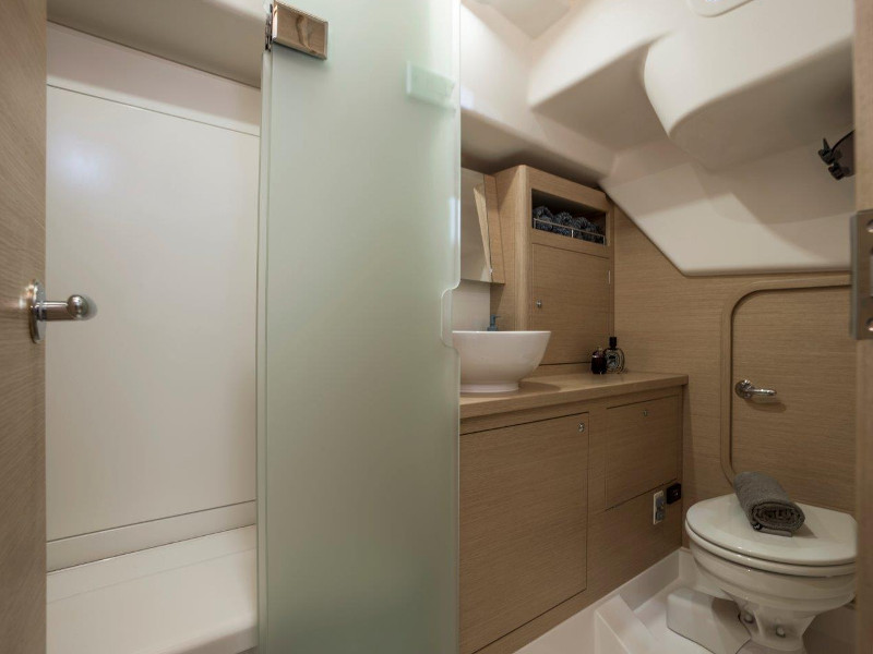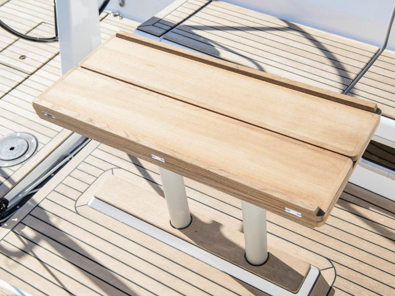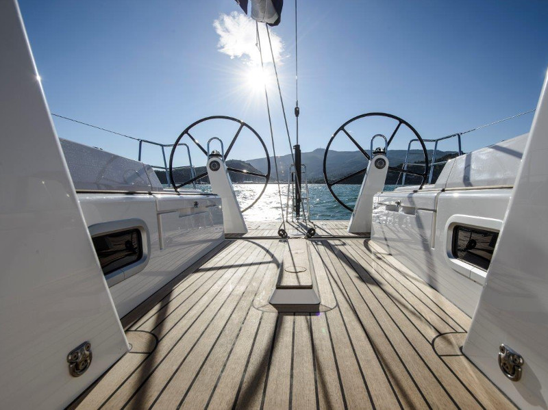steering wheel, 220 V shore conn., autopilot, bedlinen & towels, bilge pump (electric/manual/flush), bimini top, bow thruster, CD player, cockpit cushions, cockpit speakers, cockpit table, coffee maker, compass, dinghy, electric anchor winch, electrical refrigerator, electrical toilets, galley equipment, gangway, GPS chart plotter in cockpit, heating, holding tank, hot water, inverter, life raft, nautical charts & pilot book, safety equipement, sprayhood, stern shower, stove with oven (gas or electric), teak cokpit, tridata, TV (with or without DVD), VHF radio, VPN base phone, Wi-fi