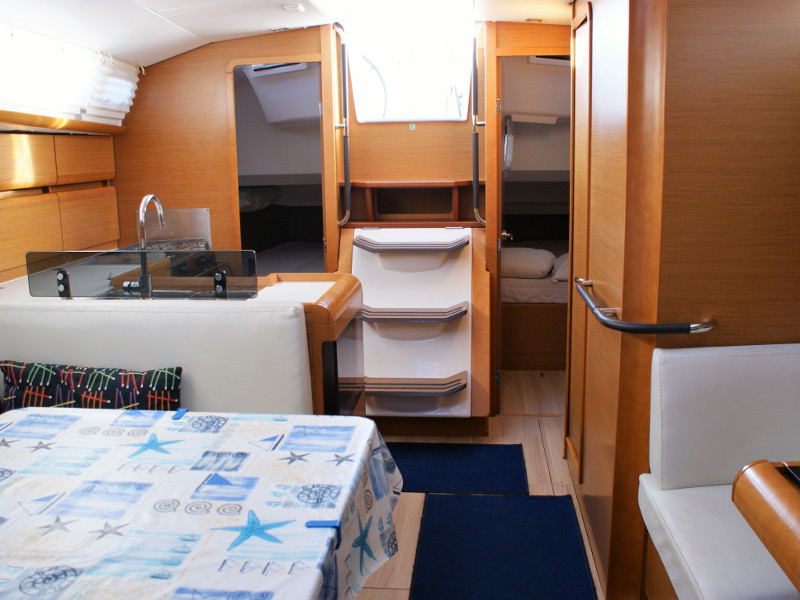 Full Batten Mainsail, Furling Genoa, Lazy Bag, Bimini Top, Cockpit table, Dinghy, Stearing Weel, Hot Water, Radio - CD, Electric Windlass, Anemometer, Autopilot, Echo Sounder, GPS, Plotter, VHF, Deck shower