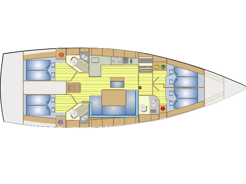 Full Batten Mainsail, Furling Genoa, Lazy Bag, Bimini Top, Cockpit table, Deck shower, Dinghy, Sprayhood, Stearing Weel, Heating, Hot Water, Radio - CD, Anemometer, Autopilot, Echo Sounder, GPS, Plotter, VHF, Bowthruster, Electric Windlass