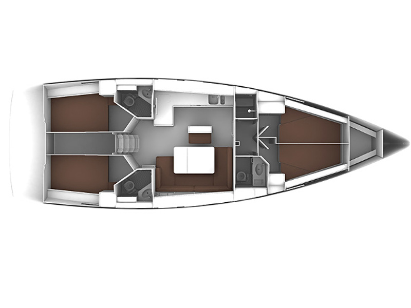 Autopilot, Biminitop, Bowthruster, Cockpit and sitting teak coated, Cockpit folding table, Depth and speed instruments, Double steering wheel, Electric Windlass, External shower, Fridge, GPS Plotter, Inflatable dinghy with outboard engine, LCD TV, Oven, Radio CD + USB, Speakers in below deck and in cockpit, Sprayhood , Transformable dinette, VHF, Water boiler, Webasto heating system, Wind station