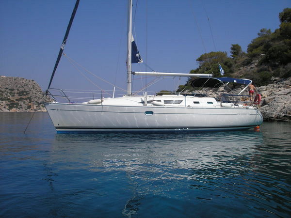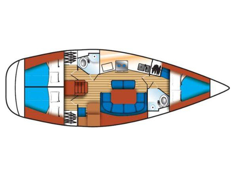 Plotter in cockpit, 220 V cable, Autopilot, Battened Mainsail, Battery charger, Bimini top, CD radio, Cockpit cushions, Cockpit shower, Cockpit table, Echo sounder, Electric refrigerator, Electric windlass, Furling Genoa, GPS plotter, Hot water, Lazy Bag, Speedometer, Sprayhood, Teak cockpit, VHF, Wind station, Dinghy