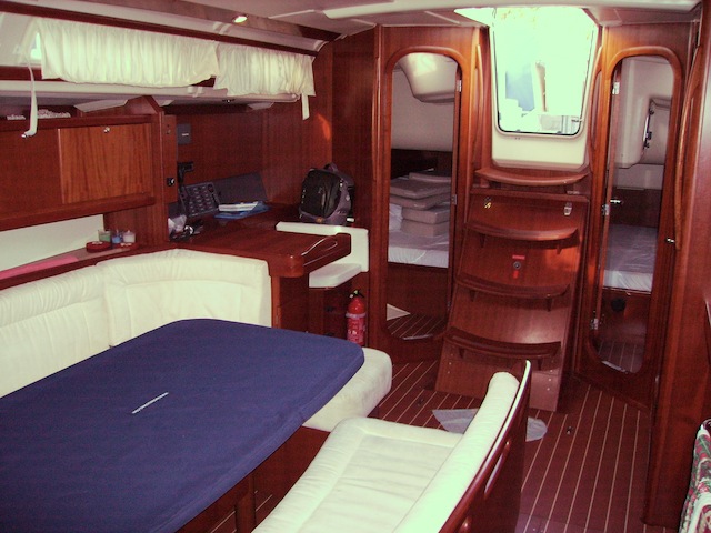 12 and 220 V plugs, Autopilot, Bimini, Blankets, Bow thruster, Cooker with oven, Deck shower, Dinghy, El. cable 220 V, Electric fridge, Electric windlass, Full baten main sail, Furling genoa, GPS, Heating, Hot water, Microwave, Pillows, Radio CD, Sprayhood, Teak deck, VHF, Weather station, Windspeed indicator