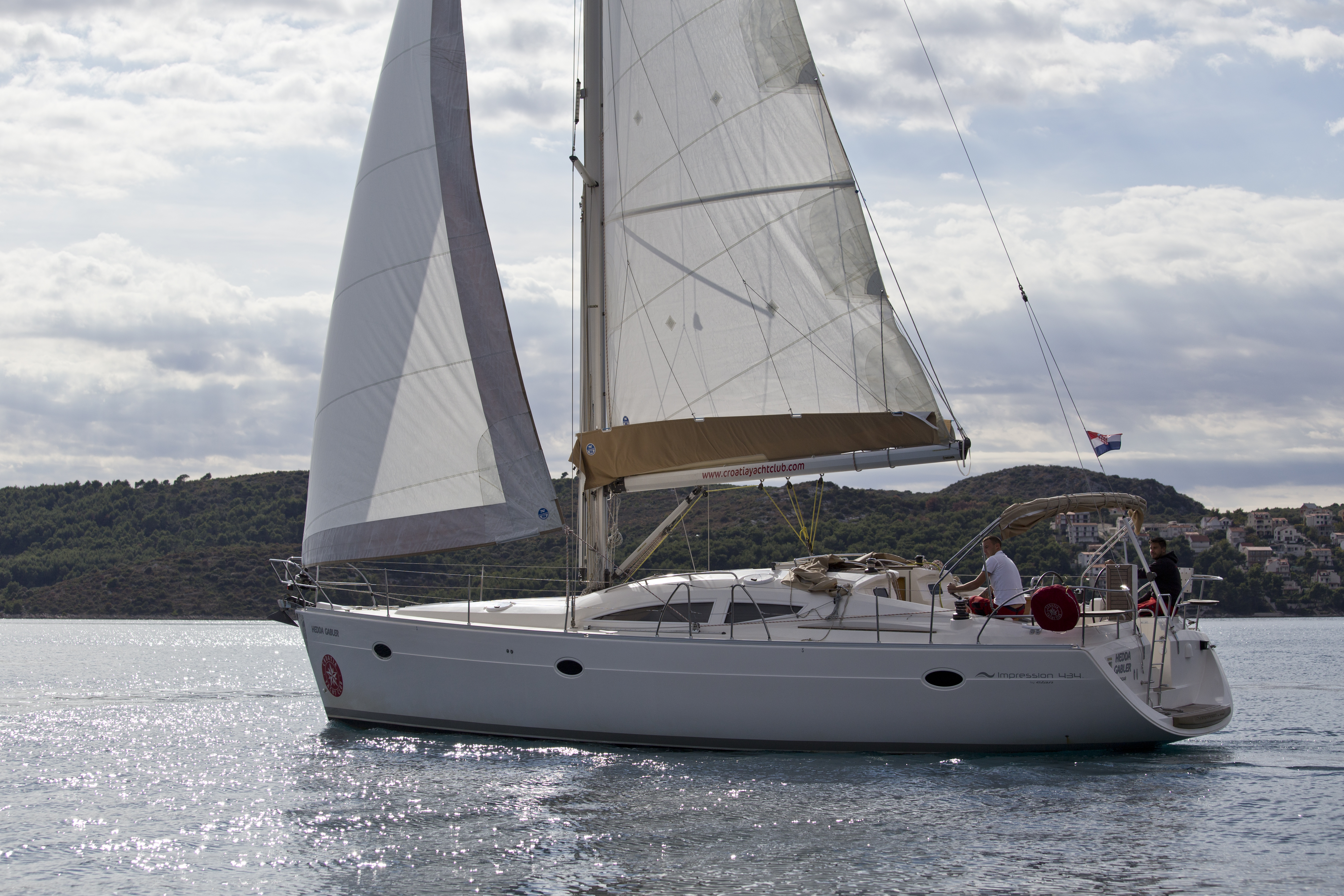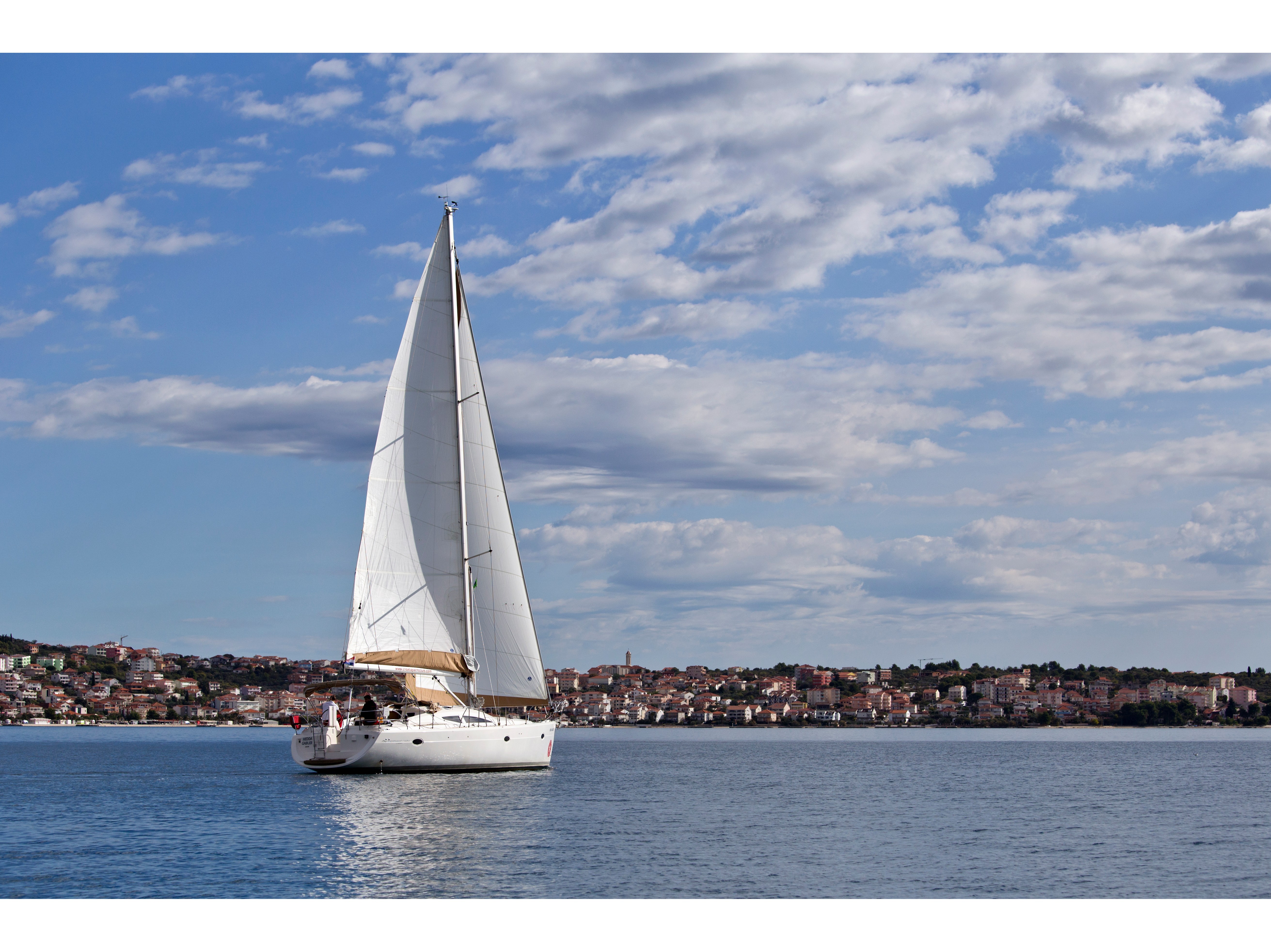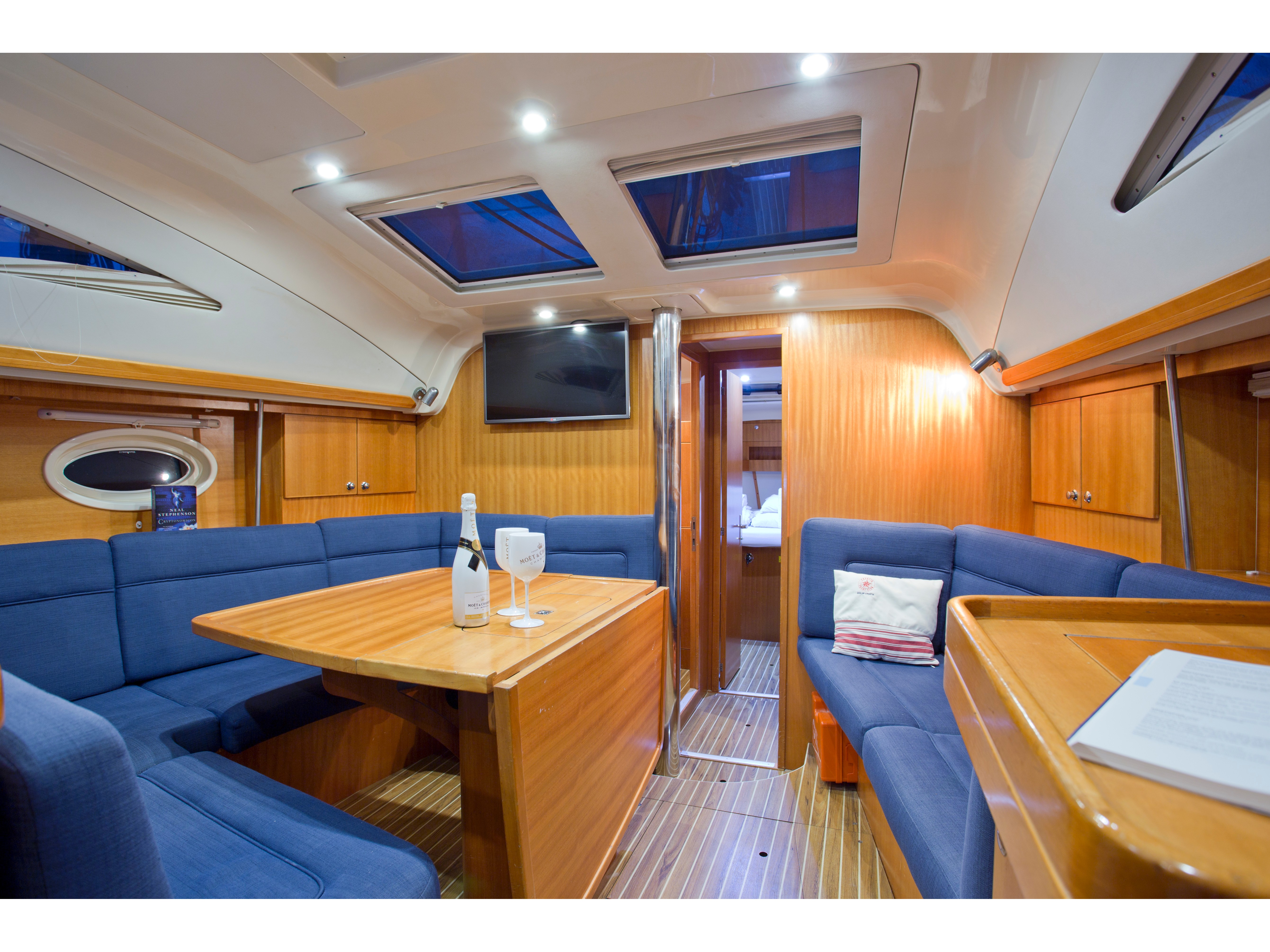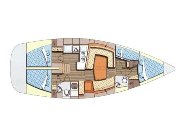 GPS plotter in cockpit, Autopilot, Bimini, Bowthruster, Cockpit table, Deck shower, Depth sounder, Dinghy, El. charger, Electric anchor winch, Electric bilge pump, Electric fridge, Furling Genoa, Hot water, Manual bilge pump, Nautical charts, Nautical guide, Self tackling winch, Stereo/CD, VHF, Bed sheets and towles, Kitchen equipment, Life jackets, Navigation equipment, Safety harnesses, Shore power, Heating, Sprayhood, Standard mainsail, 2 steering wheels, Folding propeler, Freezer , Holding tanks, New sails 2017, Pets are not allowed onboard