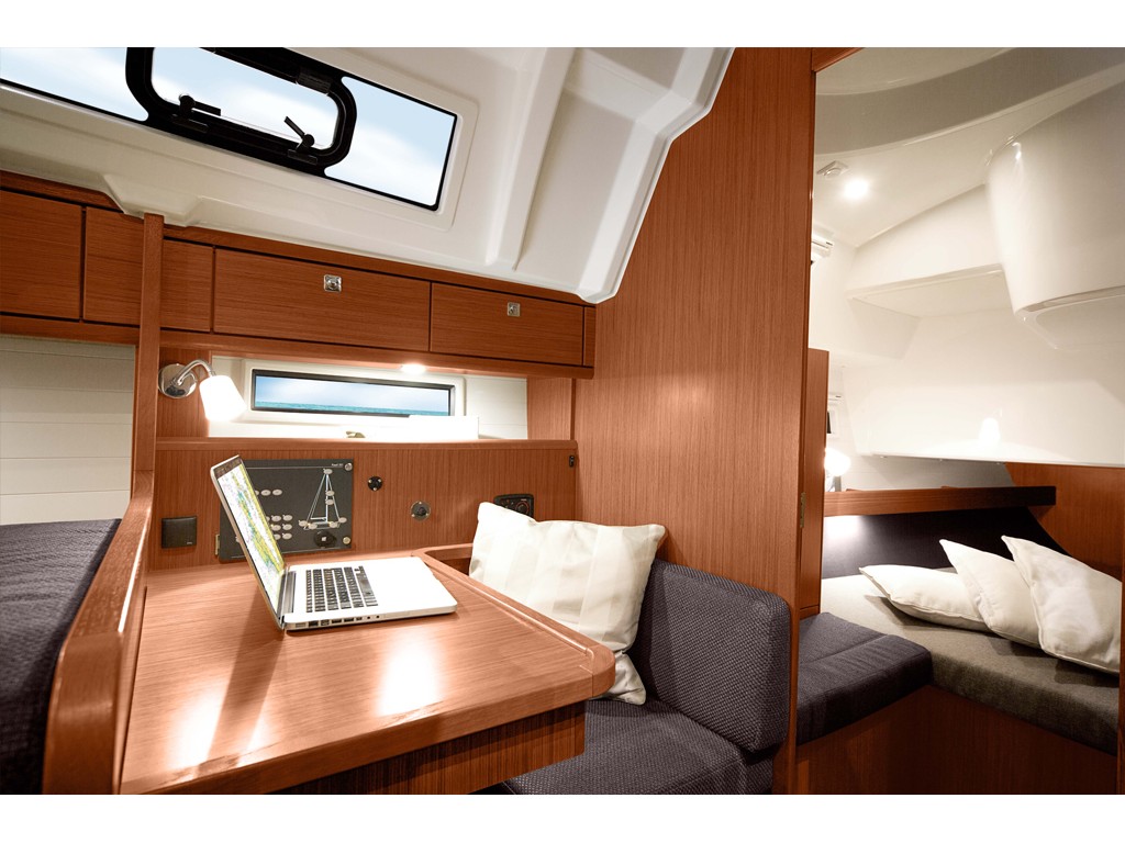 Gas stove with oven, Bathing platform, folding, Bimini, Blankets, pillows, Boarding ladder, Bucket, bowl and brush, Cockpit shower, Cockpit table, CD/DVD radio, Gas bottle, Heating, LCD TV 19", Linen, Litter bag, toilet paper, Mobile phone (netted), Outboard engine, Sink, Sprayhood, Teak deck in cockpit, Battery charter 220 V, E - switch / fuses, Shore power cable 220 V, Sockets 12/220 V , Spare fuses, Consumption battery, Fuel funnel, Spare engine belt, Spare engine oil, Spare impeller, Start battery, Boat hook, Bow anchor + 50m chain, Bowthruster, El. anchor windlass, Fenders, Gangway, Mooring rope, Stern anchor, Autopilot, Baro/Hygro/Thermometer, Binoculars, Echo sounder, GPS plotter, Hand bearing compass, Navigation charts, NAV - set, new, Pilot book, Search light, Speed/log, Steering compass, Steering wheel, UKW, Wind instrument, Wind-vane, El. bilge pump, Emergency signals, Fire extinguisher, First aid kit, Flashing buoy, Fog horn, Life belts, Life jackets, Life raft, Life ring, Mast chair, Spare tiller, Tools and spare parts, Torch, Dinghy, paddles, pump