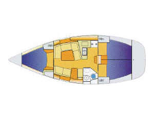 Bimini top, Sprayhood, Hot water, Shower on deck, Radio / CD, UKW radio, Autopilot, GPS, Cardplotter, 12V plug, Refrigerator, Bow thruster, Permits (transit log), Genoa Furling, In-Mast Furling