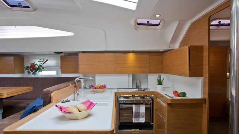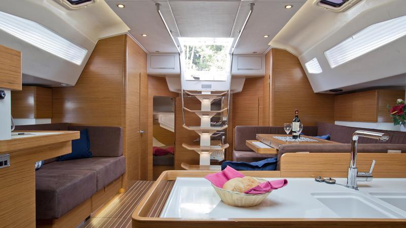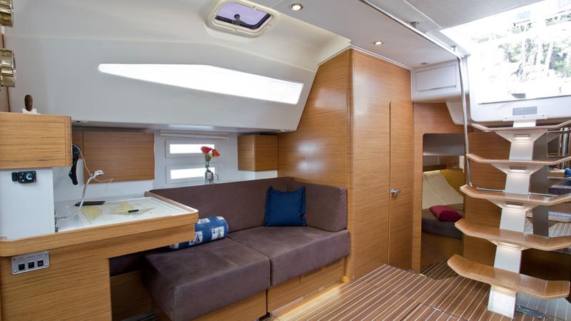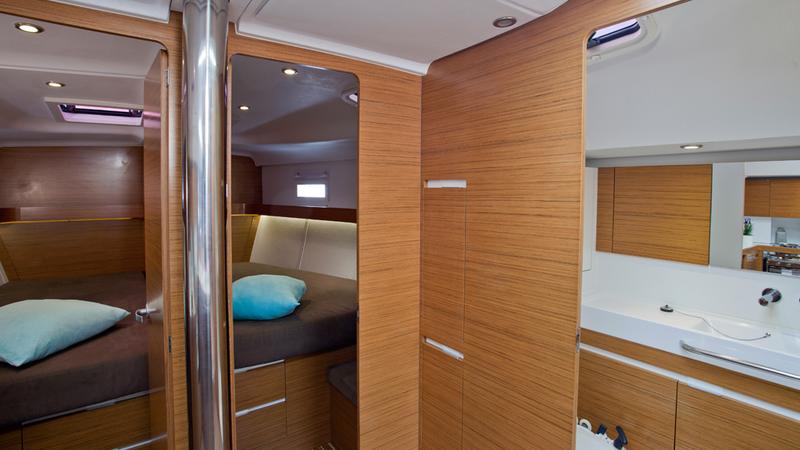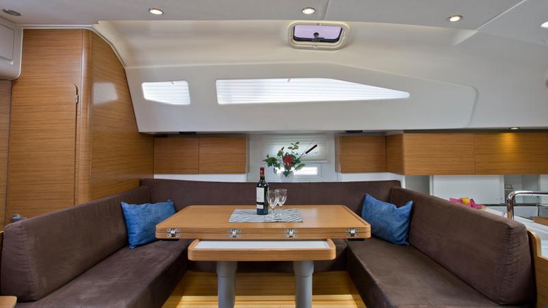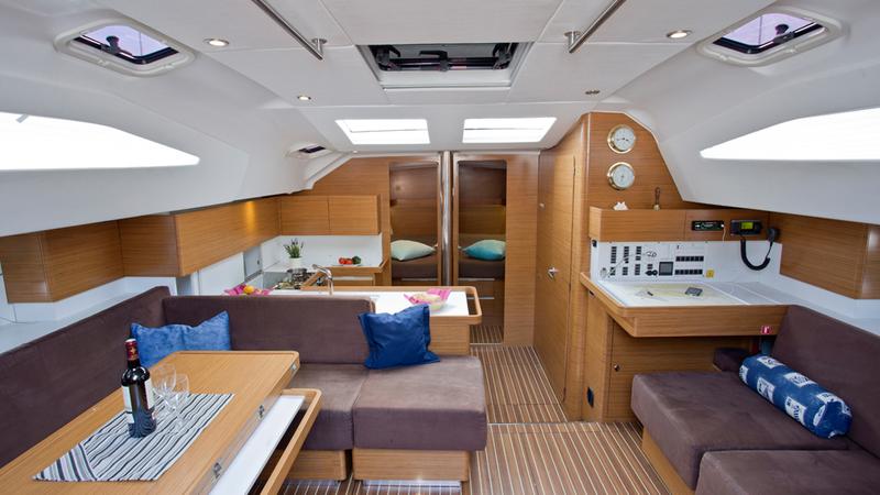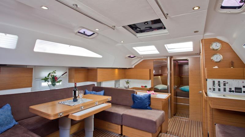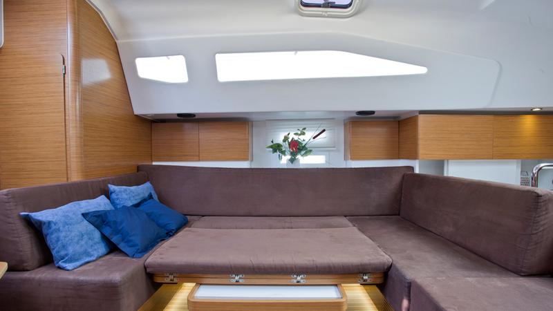 Teak on cockpit floor, cockpit seats and bathing platform, bathing platform electric lowerable , Bimini top, Boat hook, Cockpit cushins, Cockpit shower (cold/hot), Cockpit table, Dinghy, Electric anchor windlass remote controled, Emergency tiller, Fenders, Main anchor + chain, Main sail roll system, Mooring ropes, Roll genoa, Second anchor , Sprayhood, Steering wheel, storm anchor, Autopilot, Depth instrument, Divider, GPS + plotter in the cocpit, hand bearing compass, Harbour guides, Log/speed instrument, Main compass, Navigation charts, Radar reflector, VHF radio with DSC module with AIS receiver, Windex, Wind instrument, 2 gas bottles, Battery charger, Bow thruster, FM radio USB, Galley equipment, Gas stove, Hot water, Inverter 12V/220V, Set of tools, Shore connection 220 V, Speakers in cockpit, teak in cocpit, Waste water tank, Fire extinguisher, First aid kit, Fog horn, Life belts (quantity), Life jackets (quantity), Life raft, Signal flares and torches, Wire cutter, Webasto central heating system, Electric refrigerator, Wifi 1 GB