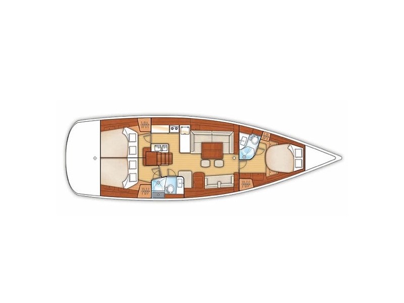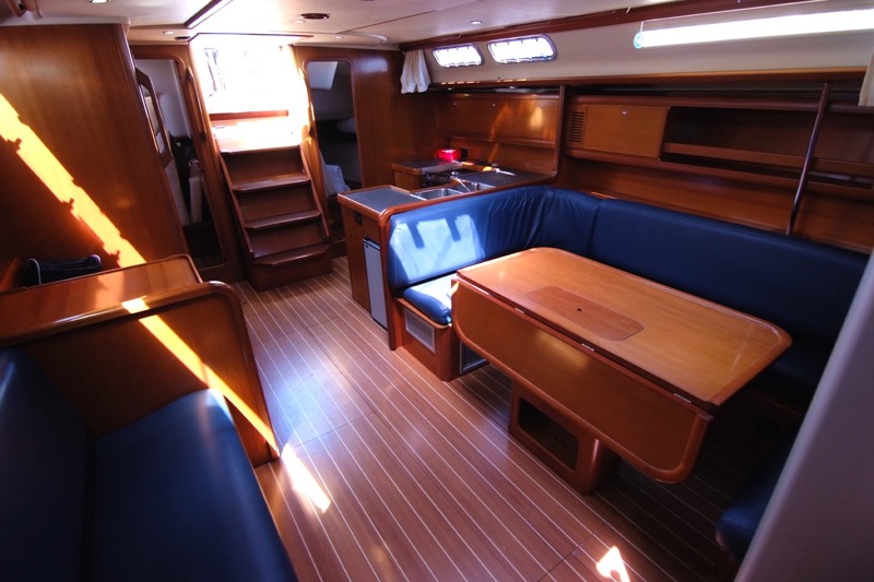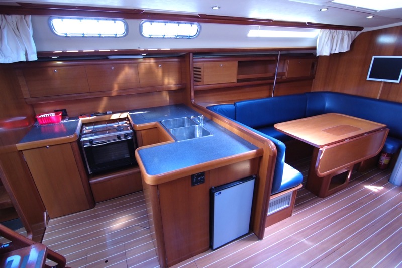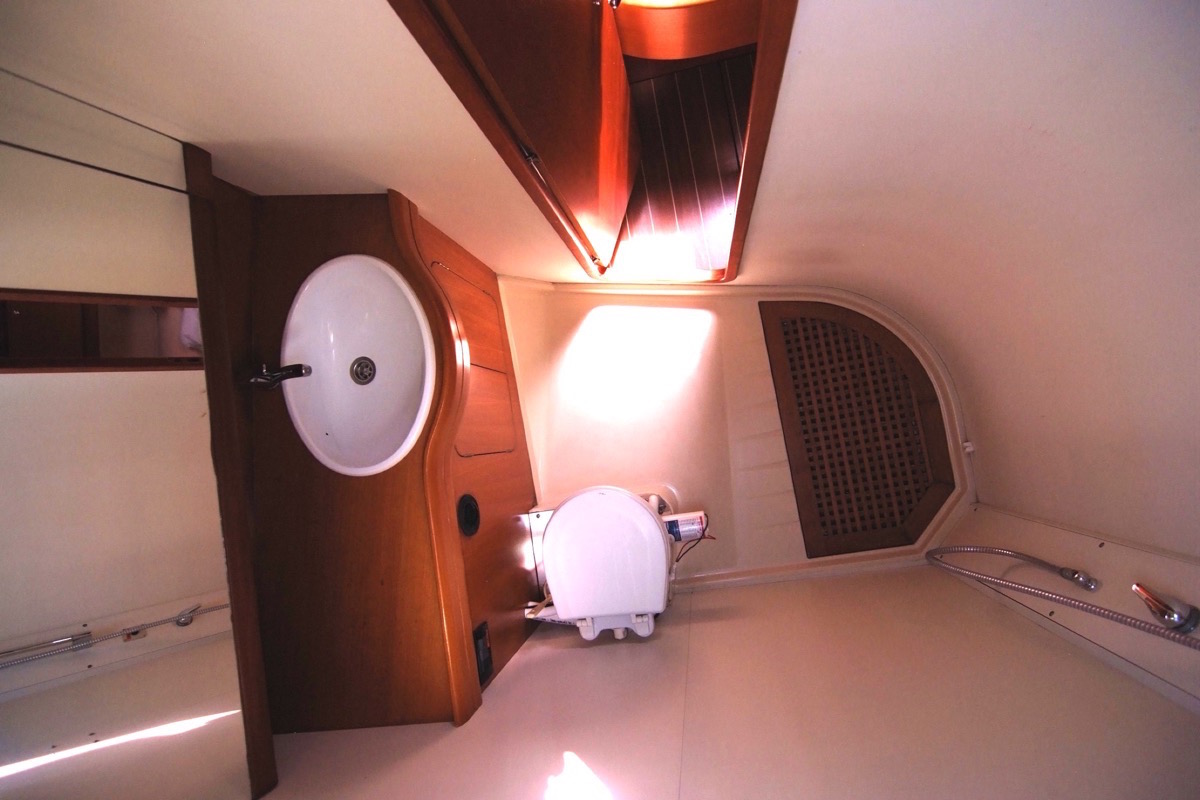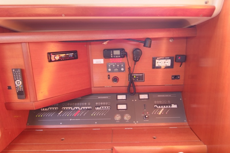 Dingy (tender), 2. Refigerator, Cockpit loudspeakers, Cockpit plotter, Coffee maker, Freezer, Radio CD/Mp3, Wi-Fi Free (1GB/week), Holding tank, Autopilot, Bilgepump handle, Bimini, Binocular, Boat hook, Bow Thruster, Bucket, Cockpit shower, Cockpit table, Depth Gauge, Electric Windlass, Emergency tiller, Fender, First aid kit, Flashlight, Fog horn, Gas bottle, Genoa Furling, GPS Chartplotter, Hand compass, Harbour directory, Hose, Lifebuoy, Life jacket, List of lights, Mast stool, Mooringsline, Oil for engine, Radio telephone, Round fender, Sea charts, Shore Power Connection, Signal rockets, Speedometer, Spray hood, Stern anchor, Tool box, Triangle,circle, WI FI, Winch handle , Wind Speed Indicator/Network Wind, Yacht documents, Rodkick, Webasto, Electrical toilet, LCD TV, Life raft, Full batten Main Sail