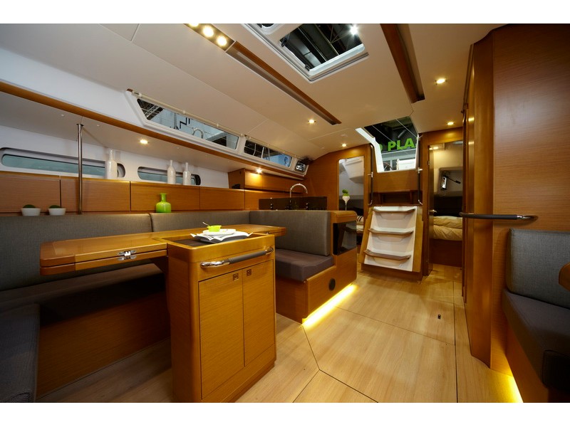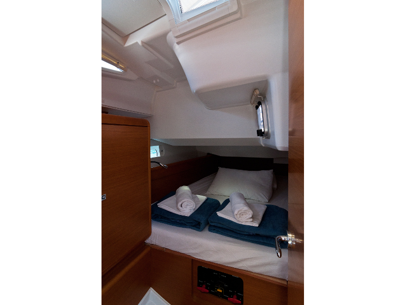 Bimini top, Cockpit shower, Cockpit table, Dinghy, Electric anchor windlass, Emergency tiller, Fenders, Furling genoa, Furling main sail, Main anchor + 50 m chain, Mooring ropes, Second anchor + rope, Autopilot, Depth instrument, Divider + plotter, GPS, Hand bearing compass, Harbour guides, Log/Speed instrument, Main compass, Navigation charts, VHF radio, Windex, Fire extinguisher, First aid kit, Horse shue buoy + light, Life belts, Life jackets, Rockets and Torches, Torch light, Wire cutter, Sprayhood, Bow thruster, Bedding, Towels