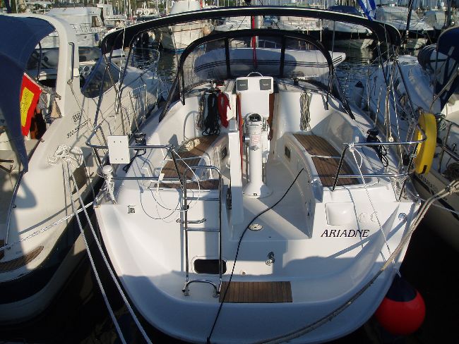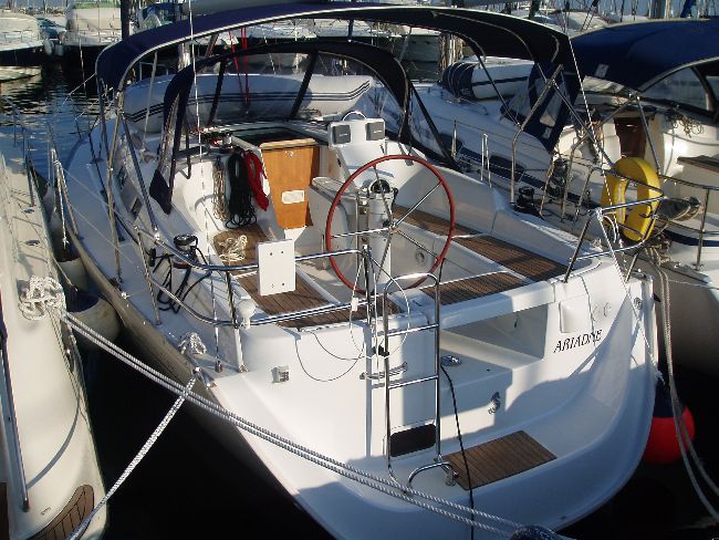 Deck Shower, Shore Power Connection, Life jacket, Cooker with oven, Distress flares, Floating line, Hot Water System, Genoa Furling, Electric Windlass, Depth Gauge, First aid kit, GPS Chartplotter, Anchor, Steering Wheel (SW)/Tiller (T), Sinks, Furling mainsail, VHF, Bimini, Echo Sounder, Nautical charts and nautical guide, Safety harness, Auxiliary anchor, Service Battery (in Ah.), Main Deck Compass, Main anchor, Speedometer, Spray hood, Liferaft, Wheel Steering, Engine Battery (in Ah.), Lifebuoy, Pillows and blankets, Calibrated anchor chain, Dinghy Inflatable, Fire extinguisher, Linen, Cockpit Speakers, Refrigerator, Cool Box, Radio Cass/Radio/CD Player with Speakers in Saloon & Cockpit, Navigation kit, Cutlery, Log/Speedo, Anti rust spray, Barometer, Binoculars, Boat/Engine/Instruments Manuals, Boat hook, Clock, Dinghy oars, Divider & Parallel ruler, Electrical bilge pump, Engine & Gear oil, Engine spares, Flags C & N, Flippers and mask, Fog horn, Gas bottles, Heelmeter, Mooring lines 10/20/50 meters, Portable hand pump, Sail & Dinghy repair kit, Sea anchor, Spare batteries, Spare navigational bulb, Tool box, Torch, Wire cutter, Electric toilet, inverter, Solar Panel