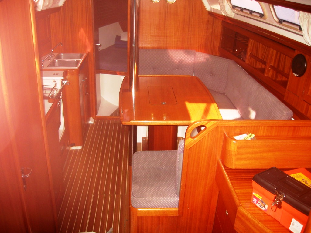 Autopilot, Pots and pans, Shower on deck, Complete navigation equipment, Bimini top, Radio / CD, Sprayhood, Complete security equipment, Cardplotter, Sunsail, Electric windlass, Gas cooker with oven, UKW radio, GPS, Permits (transit log), 12V plug, Hot water, Refrigerator, In-Mast Furling, Genoa Furling