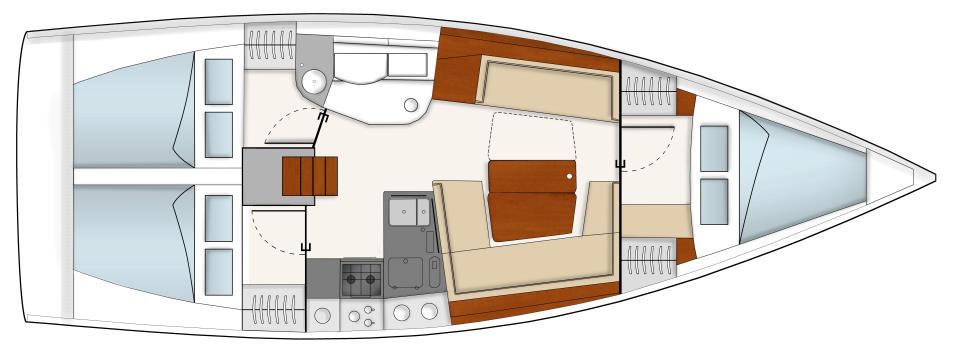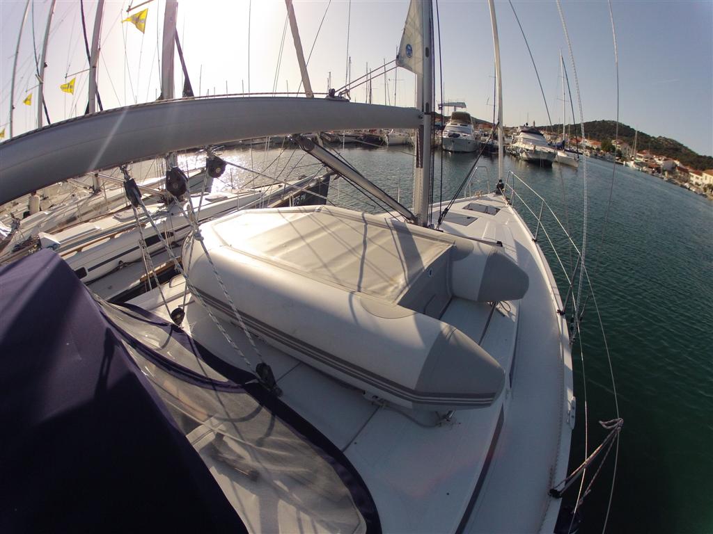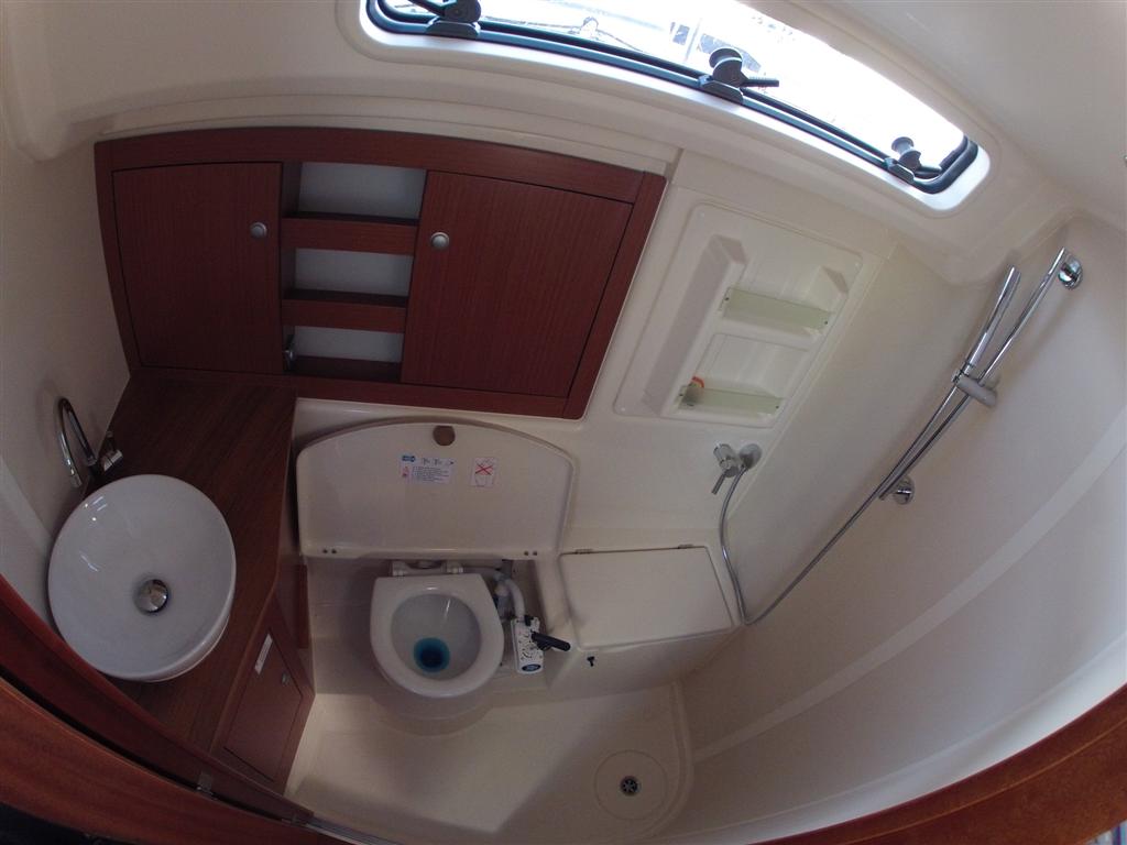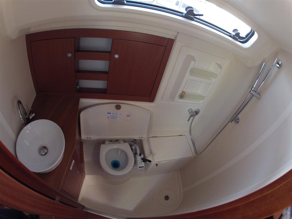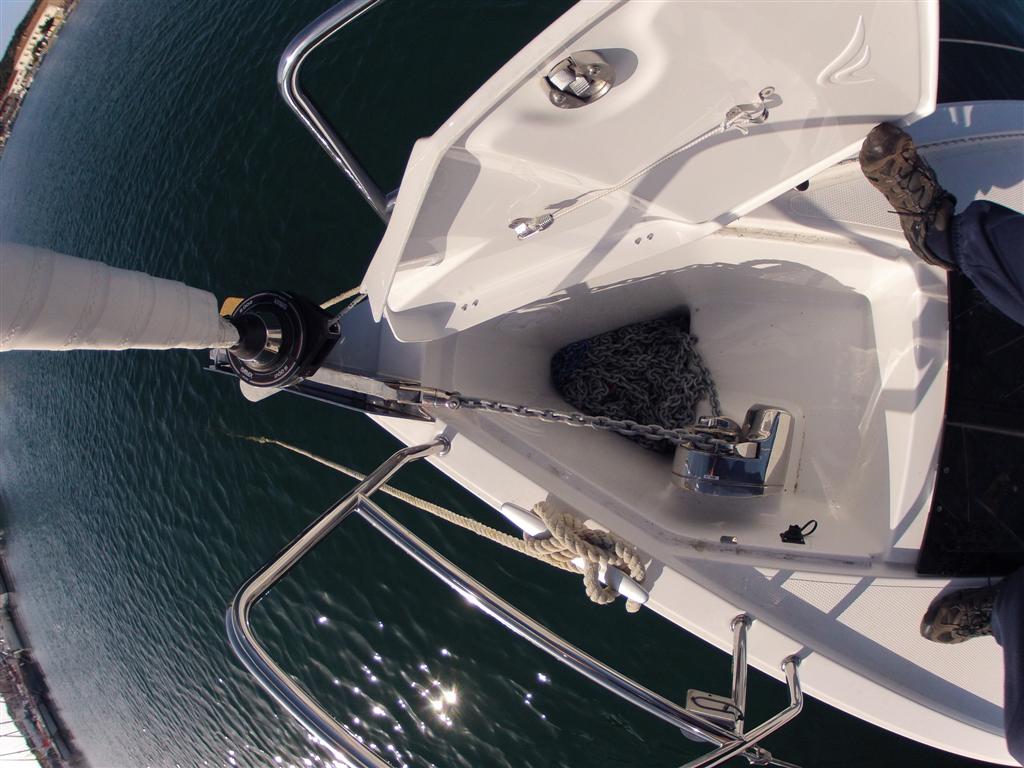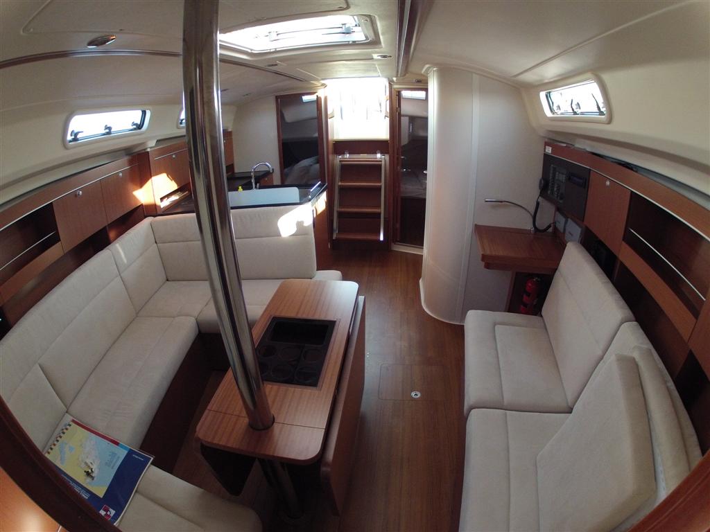 Self Tacking Jib, WiFi, Bathing platform, Autopilot, Battery charger, Bimini, Cockpit shower, Depth speed, LCD TV with DVD or USB, Electrical bilge pump, Electrical water pump, Electric windlass, GPS chartplotter in cockpit, Hot water, Motor battery, Outside speakers, Radio with CD or MP3 player, Refrigerator 12V, Roll main sail, Service battery, Sprayhood, VHF, Wind, Anchor + chain, Black ball, Black cone, Boat hook, Bucket, Deckbrush, Dinghy, Emergency helm, Funnel, Gangway, Gas bottles, Jerrycan for fuel, Jerrycan for water, Lifebuoy with light, Oars for dinghy, Outboard engine holder, Pump for dinghy, Radar reflector, Round fenders, Second anchor + chain, Shore power line, Skipper seat, Sponge, Water hose, Barometer, Binocular, Clock, Divider, Handbearing compass, Navigation charts set, Navigation ruler, Pen and pencil set, Pilot book, Triangle, Bosun chair, Distress flares box, Fire extinguishers, First aid kit, Flash lamp, Foghorn, Tool set, Windlass handle, Windlass remote control, Life jackets, Flat fenders