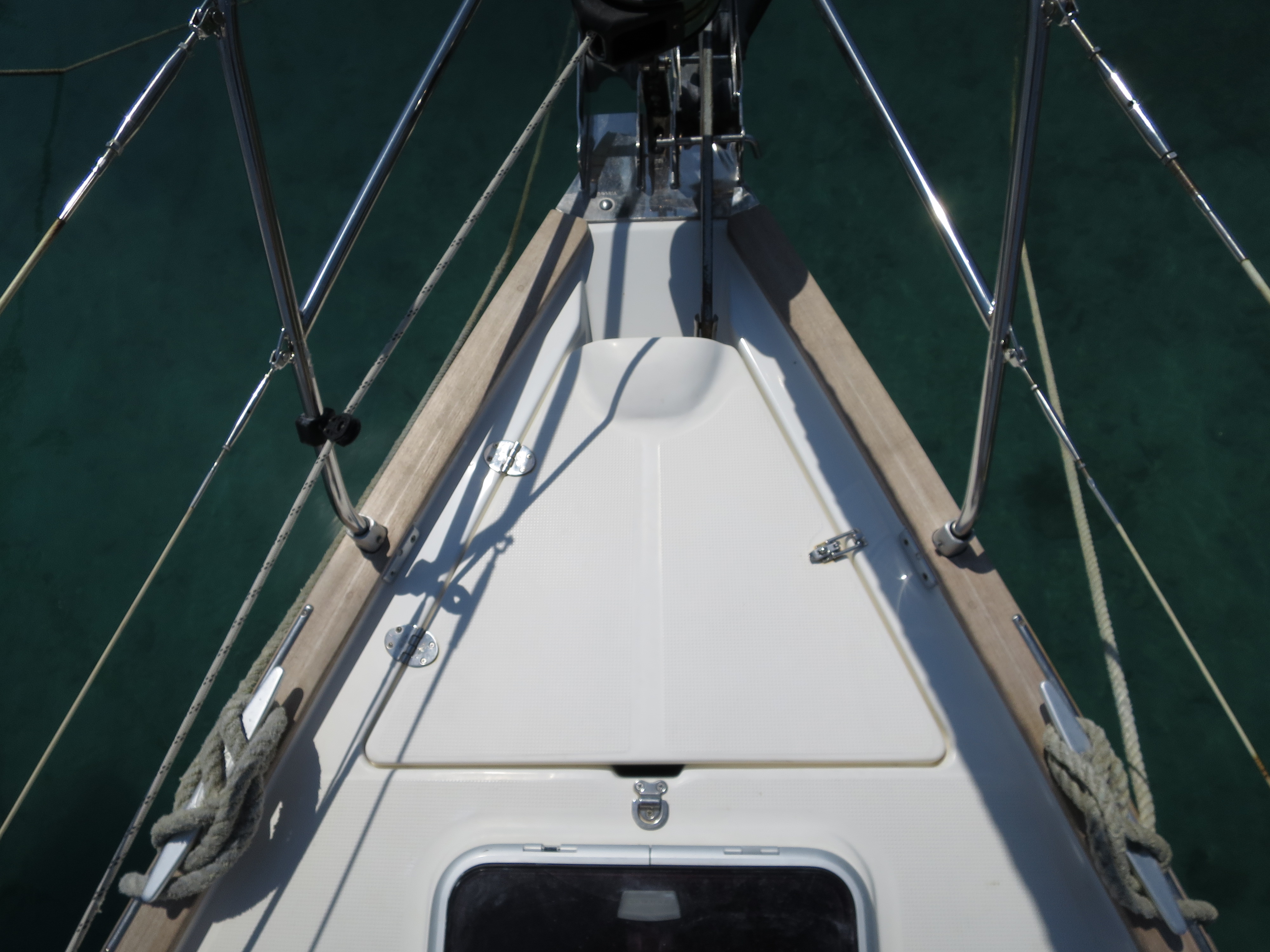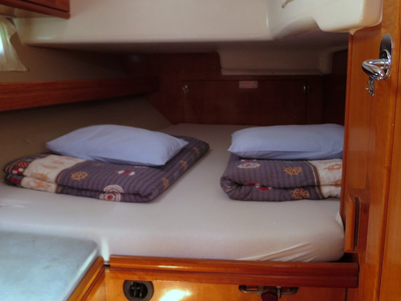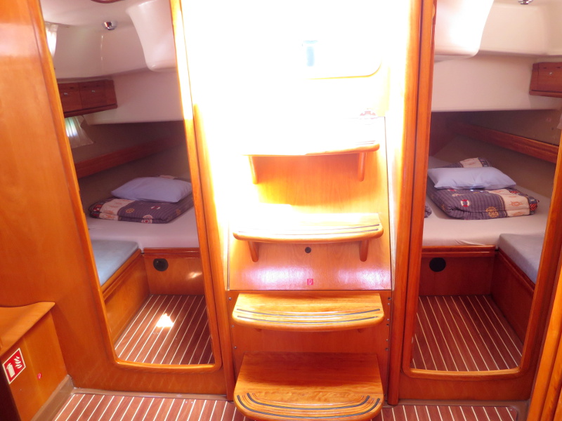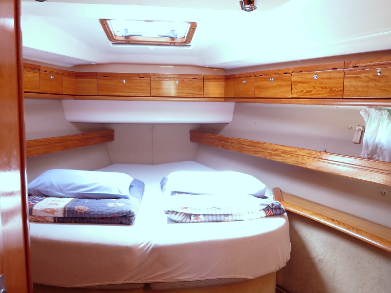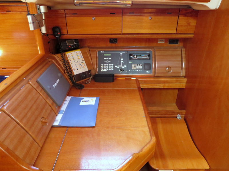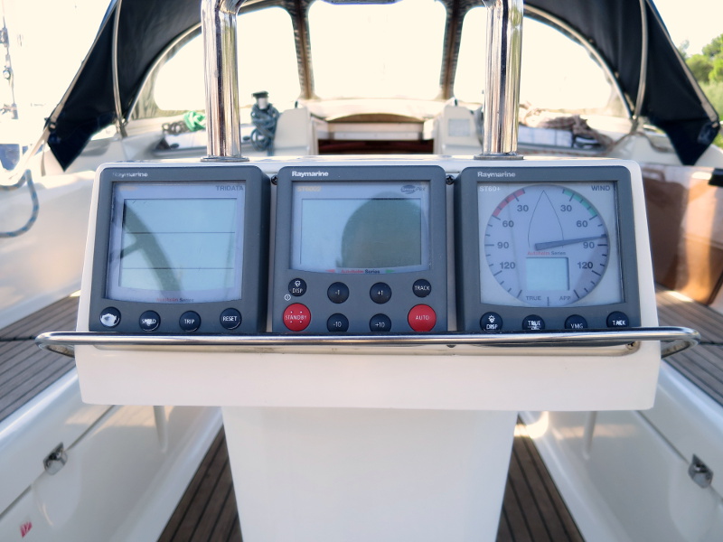 220 V, Autopilot, Bathing platform, Bimini, Blister, Dinghy, Echo sounder + log, Electric windlass, Furling main sail, GPS + Plotter, Heating, Hot water, Radio/CD/MP3/USB/IPod connection, Refrigerator, Sprayhood, VHF, Wind gauge, Bowthruster, Genoa Furling