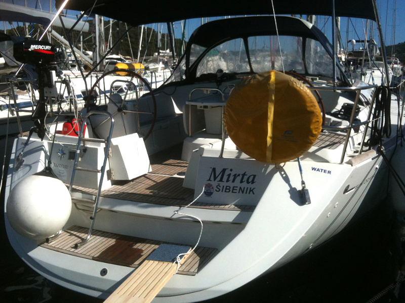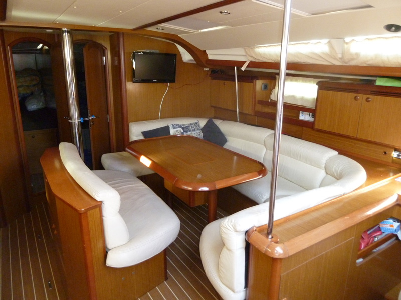 GPS Plotter in cockpit, Additional speakers in cockpit, Furling genova, 220 V, Autopilot, Bathing platform, Bimini, Dinghy, Echo sounder + log, Electric windlass, Furling main sail, GPS + Plotter, Heating, Hot water, Radio/CD/MP3/USB/IPod connection, Refrigerator, Sprayhood, VHF, Wi Fi, Wind gauge, Bowthruster, Webasto heating