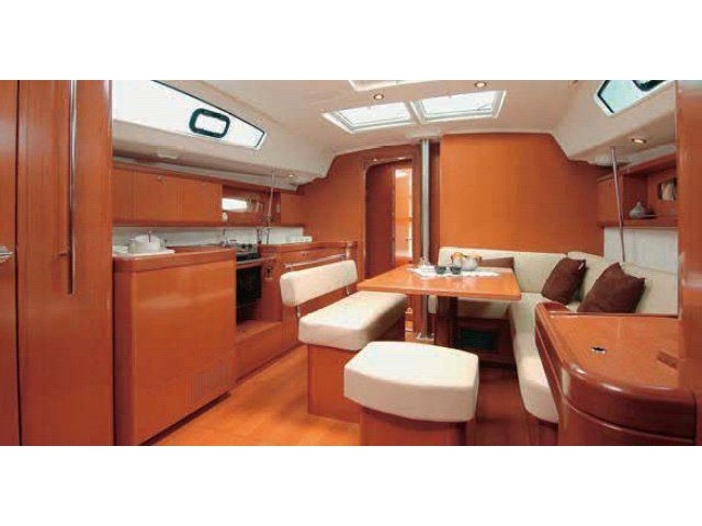 Lazy Jack, Teak cockpit, Autopilot, Auxiliary anchor, Auxiliary rudder, Biminitop, CD reader, Cutlery, Dinghy, Distress flaires, Electric fridge, Electric windlass, Fire extinguishers, First aid kit, GPS + chart plotter, Life jackets, Liferaft, Shore power connection, Sprayhood, VHF, Warm water, Wind instruments, Electric toilets, Batten Mainsail, Cockpit Speakers