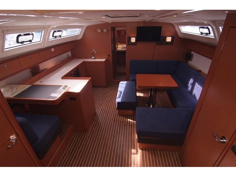 Dingy (tender), 2. Refigerator, Bathing electric platform, Cockpit plotter, Coffee maker, Holding tank, Radio CD/Mp3, Twin rudder system, Wi-Fi Free (1GB/week), Life raft, Autopilot, Bilgepump handle, Bimini, Binocular, Boat hook, Bow Thruster, Bucket, Cockpit shower, Cockpit table, Depth Gauge, Electric Windlass, Emergency tiller, Fender, First aid kit, Flashlight, Fog horn, Furling main sail, Gas bottle, Genoa Furling, GPS Chartplotter, Hand compass, Harbour directory, Hose, Lifebuoy, Life jacket, List of lights, Mast stool, Mooringsline, Oil for engine, Radio telephone, Round fender, Sea charts, Shore Power Connection, Signal rockets, Speedometer, Spi-liftsystem, Spray hood, Stern anchor, Tangun, Tool box, Triangle,circle, WI FI, Winch handle , Wind Speed Indicator/Network Wind, Yacht documents, Rodkick, Webasto, LCD TV