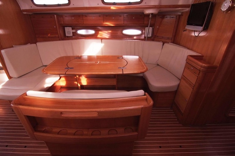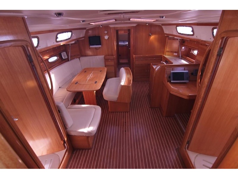 Dingy (tender), 2. Refigerator, Cockpit loudspeakers, Cockpit plotter, Coffee maker, Radio CD/Mp3, Wi-Fi Free (1GB/week), WI FI, Holding tank, Life raft, Autopilot, Bilgepump handle, Bimini, Binocular, Boat hook, Bow Thruster, Bucket, Cockpit shower, Cockpit table, Depth Gauge, Electric Windlass, Emergency tiller, Fender, First aid kit, Flashlight, Fog horn, Furling main sail, Gas bottle, Genoa Furling, GPS Chartplotter, Hand compass, Harbour directory, Hose, Lifebuoy, Life jacket, List of lights, Mast stool, Mooringsline, Oil for engine, Radio telephone, Round fender, Sea charts, Shore Power Connection, Signal rockets, Speedometer, Spi-liftsystem, Spray hood, Stern anchor, Tangun, Tool box, Triangle,circle, Winch handle , Wind Speed Indicator/Network Wind, Yacht documents, Rodkick, Webasto