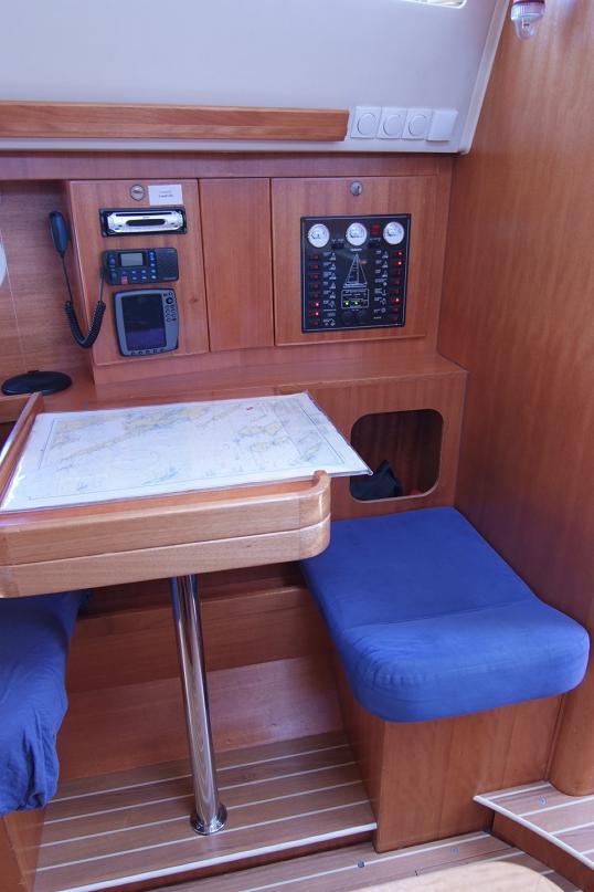 Cockpit loudspeakers, Coffee maker, Radio CD/Mp3, Wi-Fi Free (1GB/week), Dingy (tender), WI FI, Autopilot, Bilgepump handle, Bimini, Binocular, Boat hook, Bucket, Cockpit shower, Cockpit table, Depth Gauge, Electric Windlass, Emergency tiller, Fender, First aid kit, Flashlight, Fog horn, Furling main sail, Gas bottle, Genoa Furling, GPS Chartplotter, Hand compass, Harbour directory, Hose, Lifebuoy, Life jacket, List of lights, Mast stool, Mooringsline, Oil for engine, Radio telephone, Round fender, Sea charts, Shore Power Connection, Signal rockets, Speedometer, Spray hood, Stern anchor, Tool box, Triangle,circle, Winch handle , Wind Speed Indicator/Network Wind, Yacht documents, Rodkick