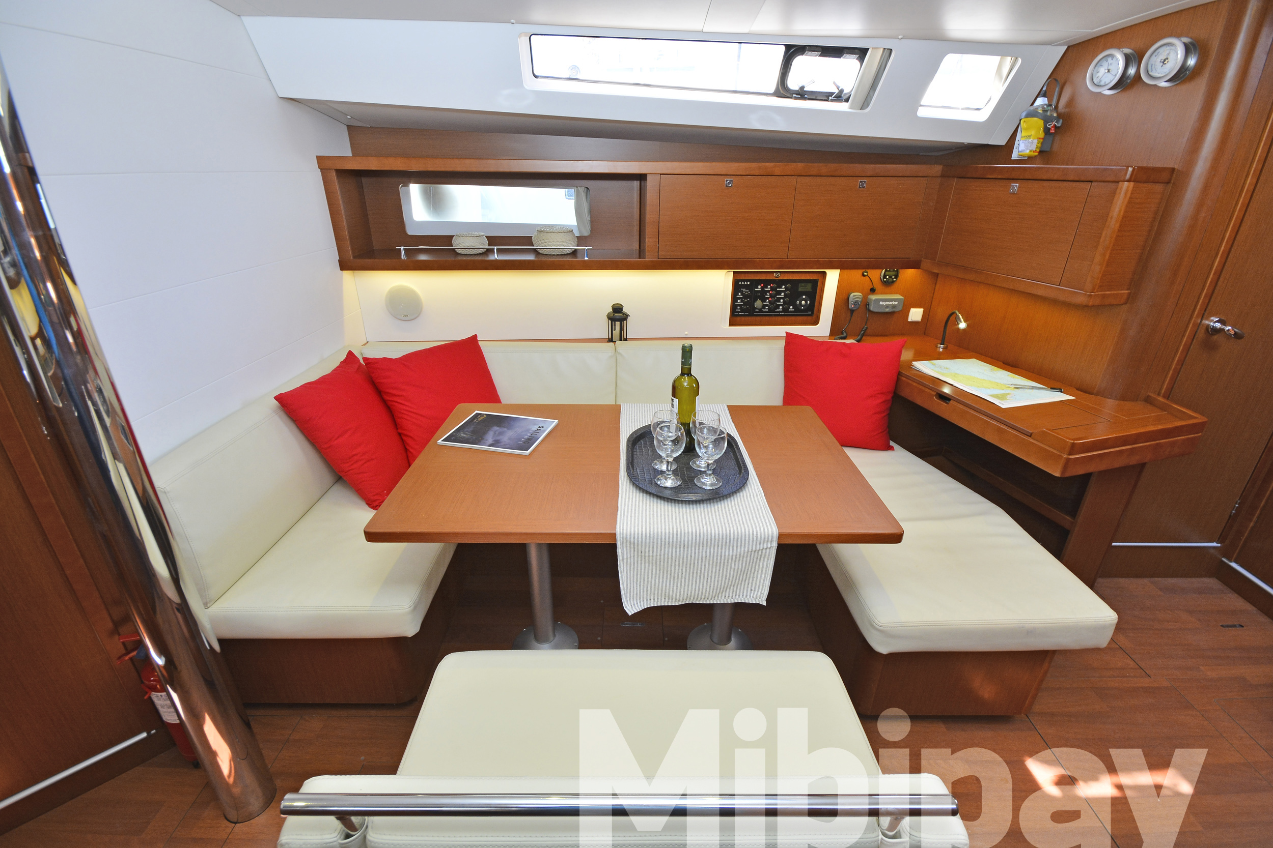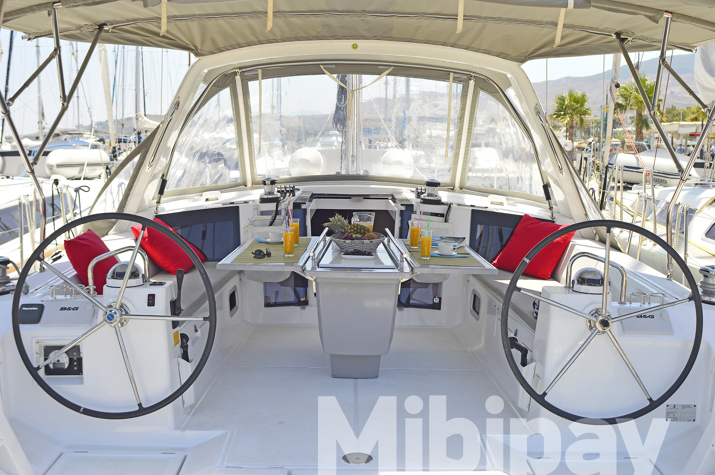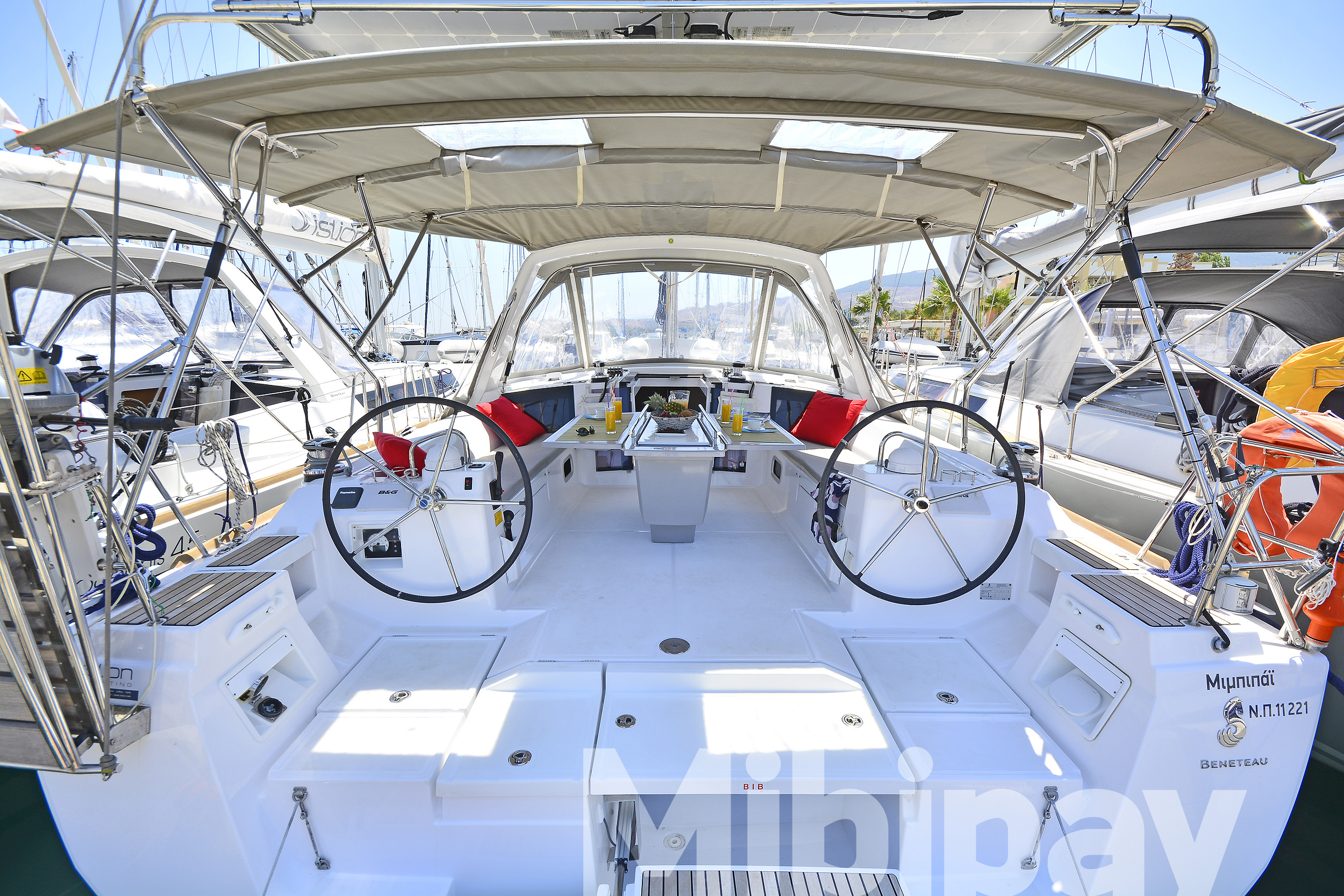ANCHOR WINDLASS & HANDLE, COCKPIT CUSHIONS, COCKPIT TABLE, DINGHY, DOOR PANELS-KEYS, ENGINE OIL, FENDERS, GANGWAY, GAS BOTTLES, MAIN ANCHOR-CHAIN, MOORING LINES, OUTBOARD MOTOR, SECOND ANCHOR, WINCH HANDLES, BREAD KNIFE, CAN OPENER, CORK SCREW, CUPS, DINNER PLATES, DUSTPAN & BRUSH, ELECTRIC FRIDGE, FILTER COFFEE POT, FORKS, FRUIT PLATES, FRYING PANS, GAS STOVE, GLASSES, KETTLE, KNIVES, SALAD BOWL, SAUCE PANS, SOUP PLATES, SPOONS, TEA SPOONS, TEA STRAINER, TOILET BRUSH, AUTOPILOT, BINOCULARS, COCKPIT COMPASS, DIVIDER, ECHO SOUNDER, ERASER, GPS, GREEK WATERS PILOT, HAND BEARING COMP, PARALLER RULER, PENCILS, PLOTTER, SEA CHARTS, VHF, WIND INSTRUMENTS, 220 VOLT SOCKETS, BATTERY CHARGER, HOLDING TANKS, PILLOWS, MUSIC PLAYER, BLACK BALL, EMERGENCY HELM, EPIRB, FIRE EXTINGUISHERS, FIRST AID KIT, FLOATING LIGHT, FOG HORN, HORSESHOE LIFEBUOY, LIFE JACKETS, LIFE RAFT, SAFETY BELTS, TORCH LIGHT, BIMINI TOP, FURLING GENOA, SHEETS, SPRAYHOOD, Hot Water System, Speedometer, SOLAR PANELS, BOW THRUSTER, GPS IN COCKPIT, USB CONNECTION, ELECTRIC TOILETS