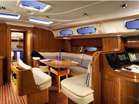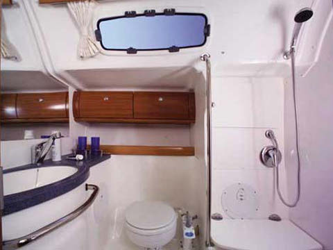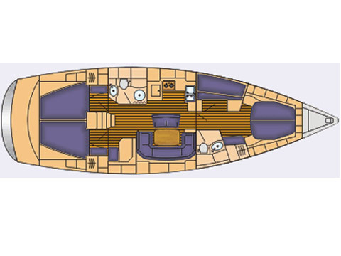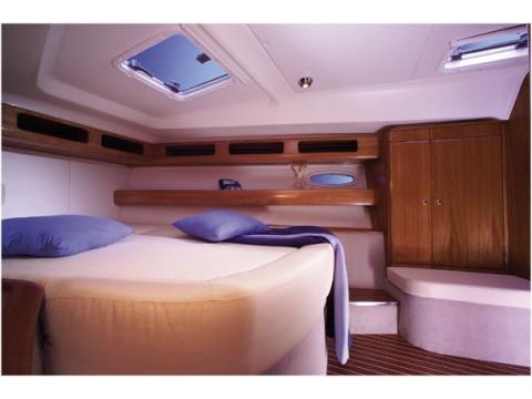 Easy bag, Full batten main sail, Furling genoa, Self tailing winches, Anchor electric windlass, Batery charger + shore cable : 12V socket, 220, Bed linen, Bimini, Cockpit speakers, Cockpit table, Coffee machine, Deck shower, Dinghy, Electric bilge pump, Electric fridge, External cushions, Gangway, Gas bottle, Gas stove with oven, Hot water, Outboard engine, Propeller, Radio CD player, Sprayhood, Steering wheel, Autopilot, Binoculars, Chartplotter in cockpit, Compass, Electronic sea charts, GPS, Hand compass, Standard paper charts, Tool kit, VHF radio, Wind speed meter, Box of flares, Emergency anchor, Emergency tiller, First aid kit, Floating light, Horse shoe buoy, Life jackets, Life raft, Radar reflector, Safety harnesses, Safety harnesses on request, Smoke box, Torch