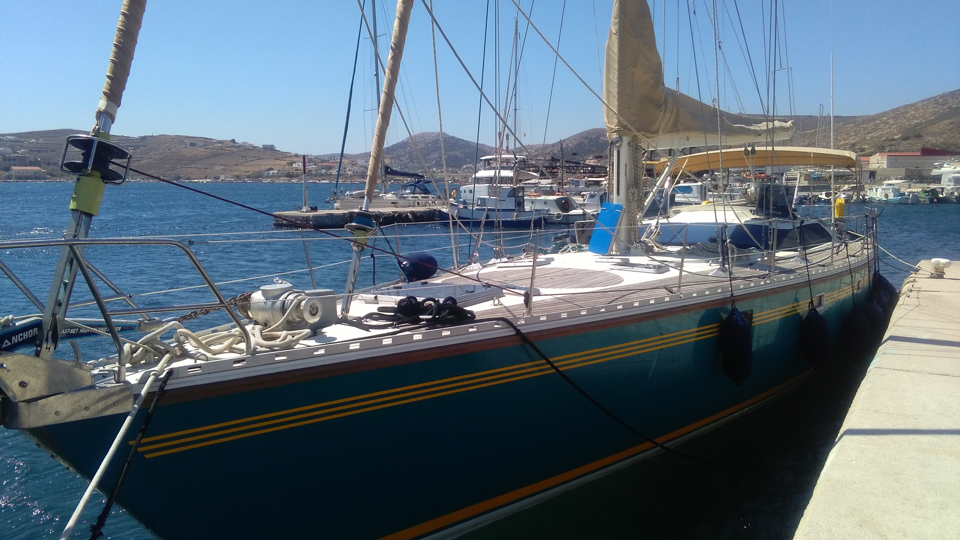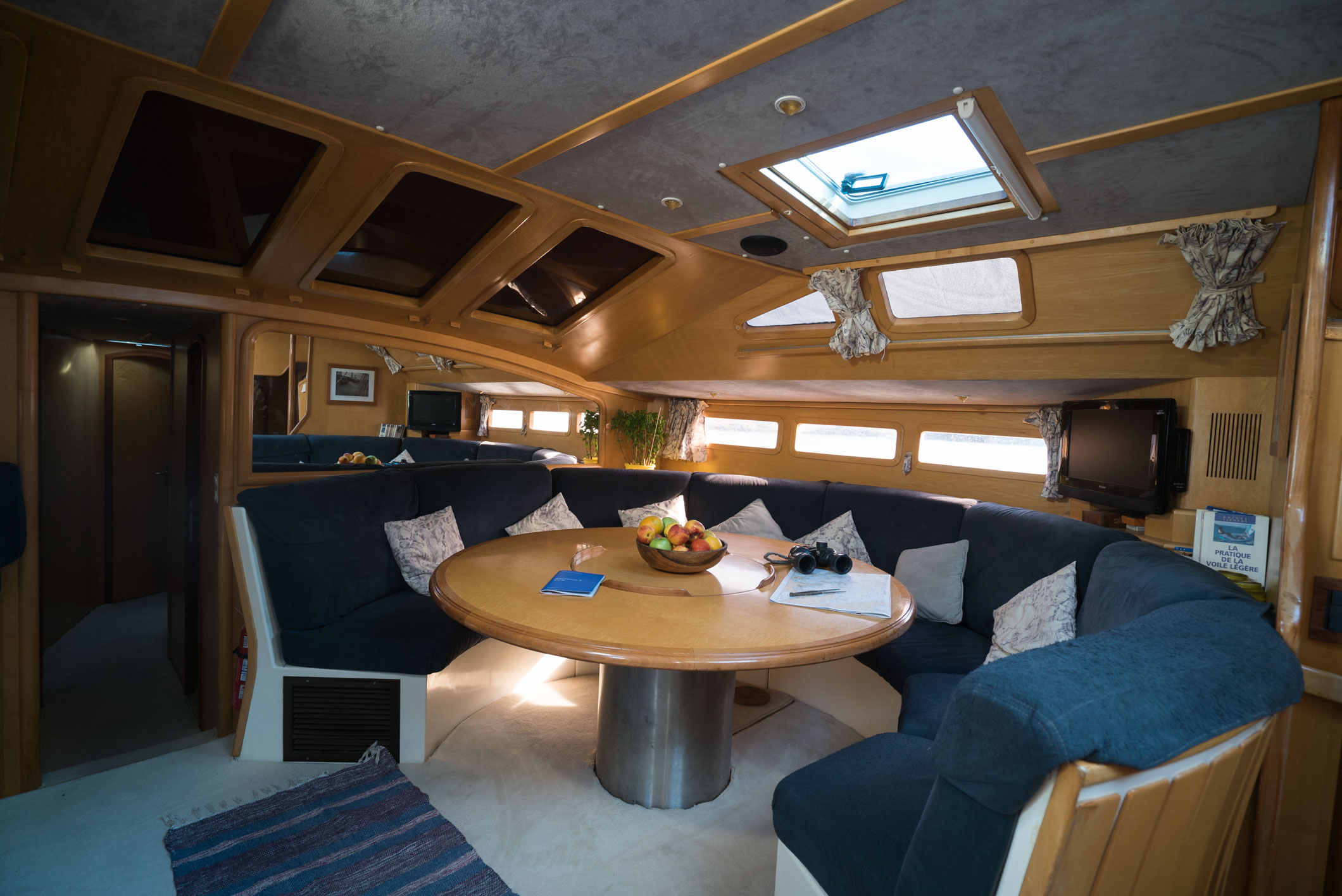 Full batten Main Sail, Genoa Furling, Autopilot Autohelm 7000, Computeur, Depth-sounder-windspeed, EPIRB, Funuro NAVnet 3D chart plotter, Max Sea logiciel, Satellite phone, VHF/SSB 2 VHF, VHF GMDSS, Batteries 800 Amp generator 17 kWA, Bow thruster, Charger for 220V power supply 12 and 24V, Inverter , Dinghy 3.40 m with 25 hp engine, Barbecue, Equipment for scuba diving with bottle, Fishing equipment, Snorkeling equipment, Swim ring, Water skiing, Air conditioning, Computer, Deck shower, Diving compressor, Freezer, Generator, Ice-maker, Microwave, Refrigerator, Stereo , TV, Washing machine, Watermaker