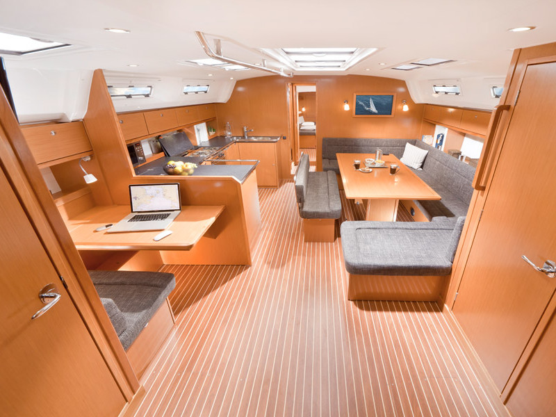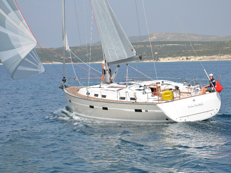 Autopilot, Wind station, Bimini top, Lazy Bag, Furling Genoa, GPS plotter, Sprayhood, Electric refrigerator, Electric windlass, CD radio, Hot water, VHF, 220 V cable, Cockpit shower, Cockpit table, Speedometer, Bow thruster, Webasto heating, Teak cockpit, Double wheel steering, Plotter in cockpit, Full batten mainsail, Cockpit cushions, Dinghy, Echo sounder
