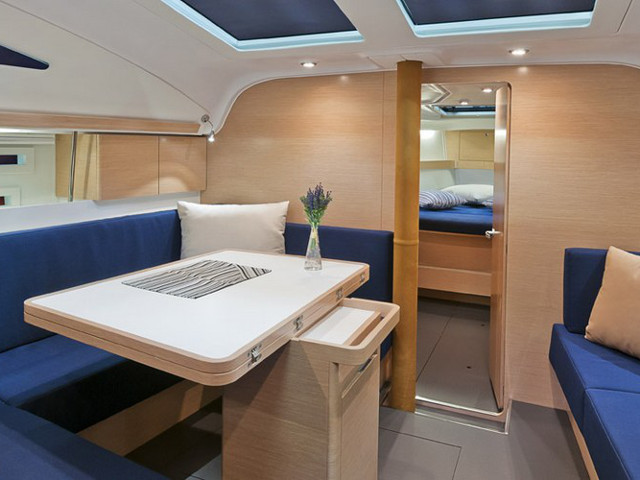 Bow thruster, Dinghy, Gas bottle, GPS Plotter, Sprayhood, Towels, Electr. anchor winch, Hot Water System, Spinnaker, Genoa Furling, Deck Shower, Nautical charts and nautical guide, Bathing Platform, Radio/CD, VHF, Cooker with oven, Refrigerator, Bed linen, Autopilot, Bimini, Heating, Furling mainsail