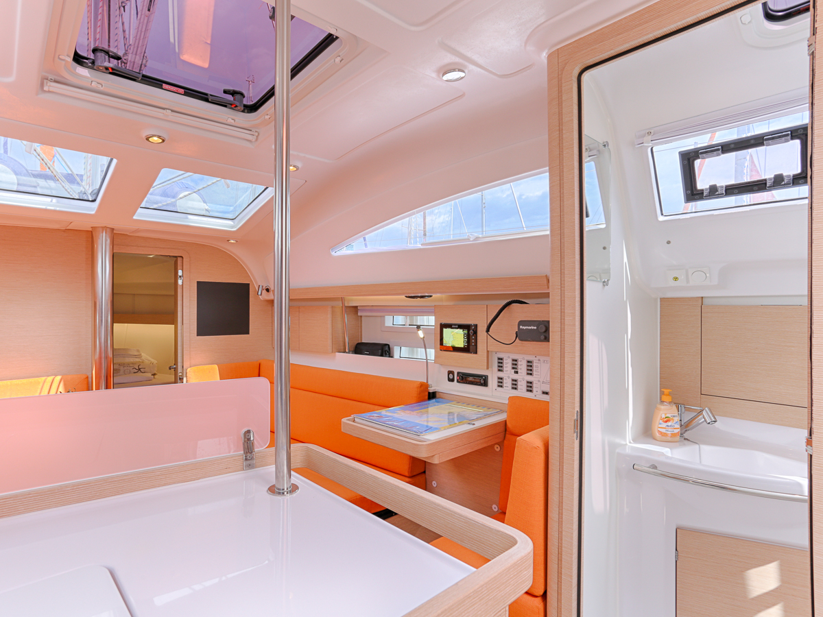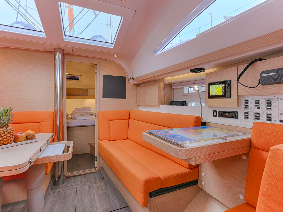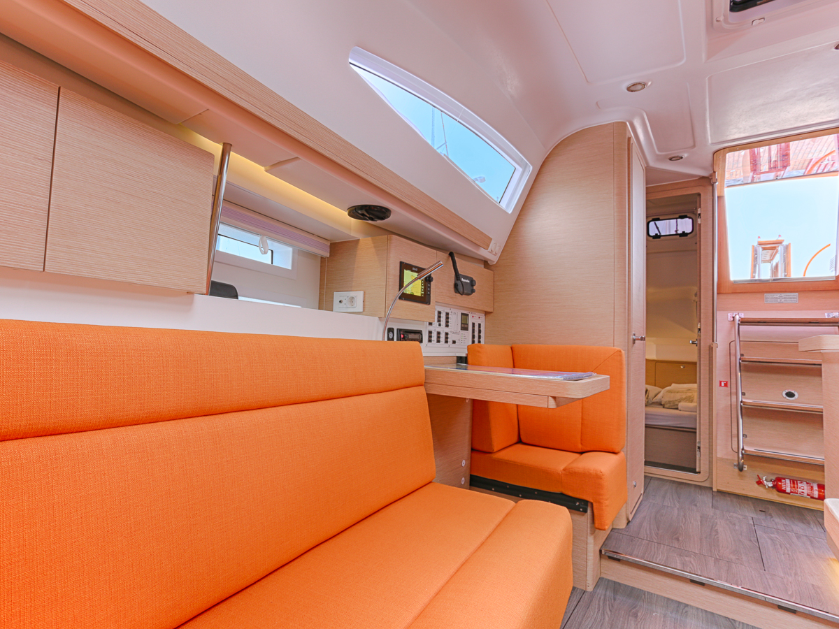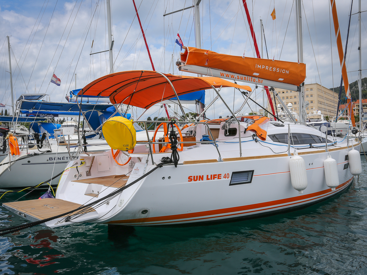 Lazy bag / semi-battened , Holding tank, YEARLY BERTH IN ACI MARINA SPLIT, CD player, Hot water, Refridgerator, Stove, Safety net, Autopilot, Binocluar, Bow thruster, Daily marks, Divider, Echo sounder, Flag, GPS chart plotter, Info map, Log speedometer, Navigation ruler, Pilot book, Sea charts, Torch, VHF radio telephone, Wind indicator, Distress signal kit, Electric bildge pump, Fire extinguisher, Fire hatchet, First aid kit, Foghorn, Life jacket junior, Life jackets, Radar reflector, Repair kit with impeller, engine belt, fuel filters, oil, etc., Safety belt, Safety harnesses, Stormy anchor, Tool box, Anchor with chain 50 m, Automatic light, Bimini top, Boat hook, Central compass, Cockpit table, Deck brush, Deck shower, Door panels&keys, El. cable 220 V, Emergency tiller, Fenders, Gangway, Gas bottles, Hand pump handler, Horseshoe life bouy, Jerrycan of petrol, Mooring ropes, Oars, Padlock, Plastic bucket, Pump, Sprayhood, Steering wheel, Swimming ladder, Tank oppener keys, Water hose, Winch handles, Windlass el., 220 V INVERTER, Cockpit speakers, Bathing platform, Outboard engine - extras, Furling genoa