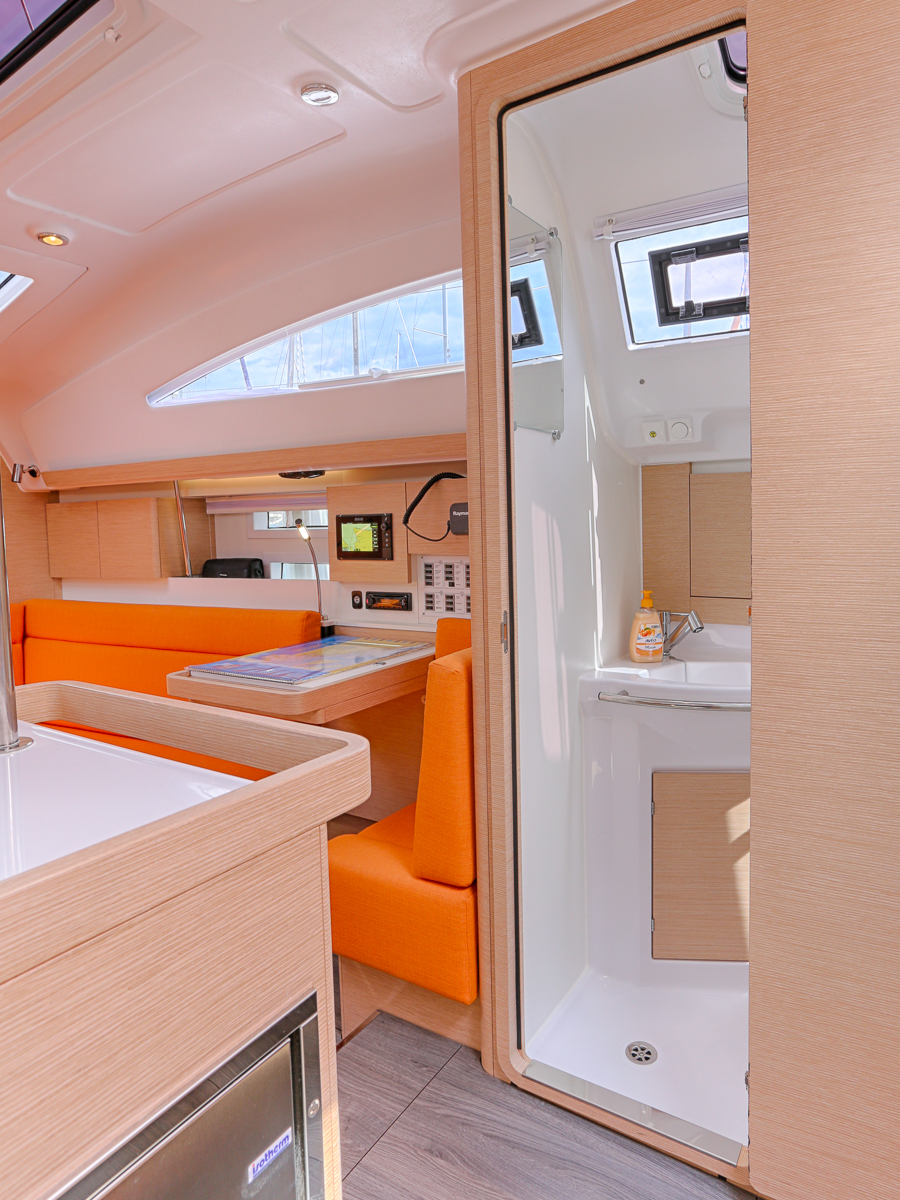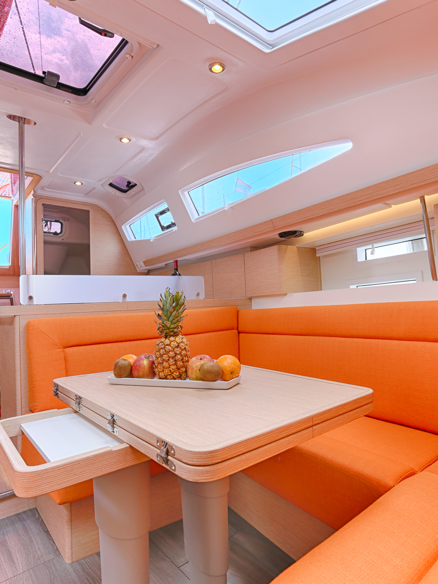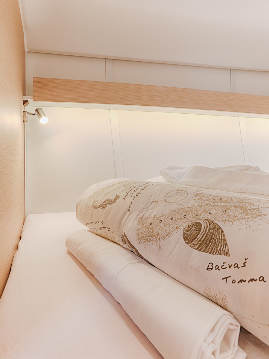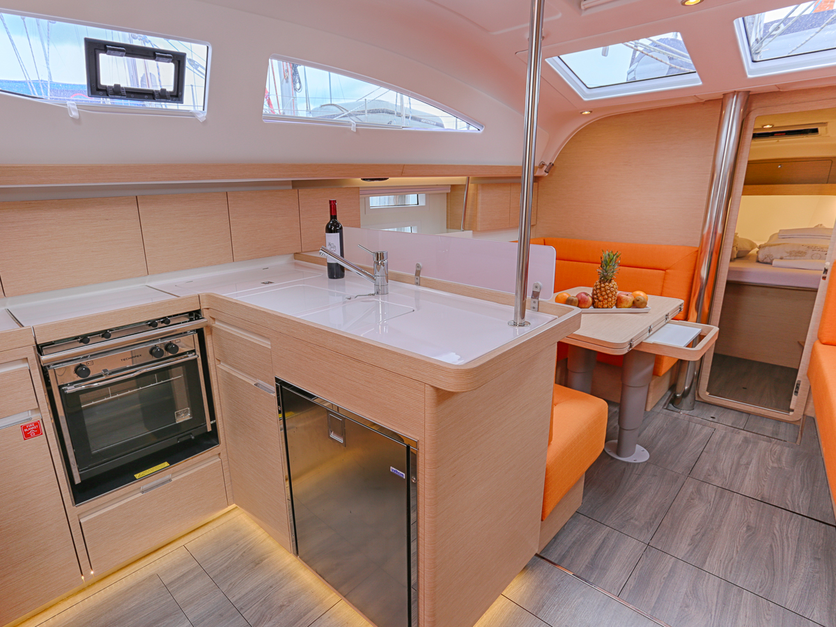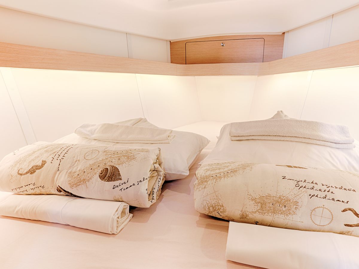 Lazy bag / semi-battened , Holding tank, YEARLY BERTH IN ACI MARINA SPLIT, CD player, Hot water, Refridgerator, Stove, Safety net, Autopilot, Binocluar, Bow thruster, Daily marks, Divider, Echo sounder, Flag, GPS chart plotter, Info map, Log speedometer, Navigation ruler, Pilot book, Sea charts, Torch, VHF radio telephone, Wind indicator, Distress signal kit, Electric bildge pump, Fire extinguisher, Fire hatchet, First aid kit, Foghorn, Life jacket junior, Life jackets, Radar reflector, Repair kit with impeller, engine belt, fuel filters, oil, etc., Safety belt, Safety harnesses, Stormy anchor, Tool box, Anchor with chain 50 m, Automatic light, Bimini top, Boat hook, Central compass, Cockpit table, Deck brush, Deck shower, Door panels&keys, El. cable 220 V, Emergency tiller, Fenders, Gangway, Gas bottles, Hand pump handler, Horseshoe life bouy, Jerrycan of petrol, Mooring ropes, Oars, Padlock, Plastic bucket, Pump, Sprayhood, Steering wheel, Swimming ladder, Tank oppener keys, Water hose, Winch handles, Windlass el., 220 V INVERTER, Cockpit speakers, Bathing platform, Outboard engine - extras, Furling genoa