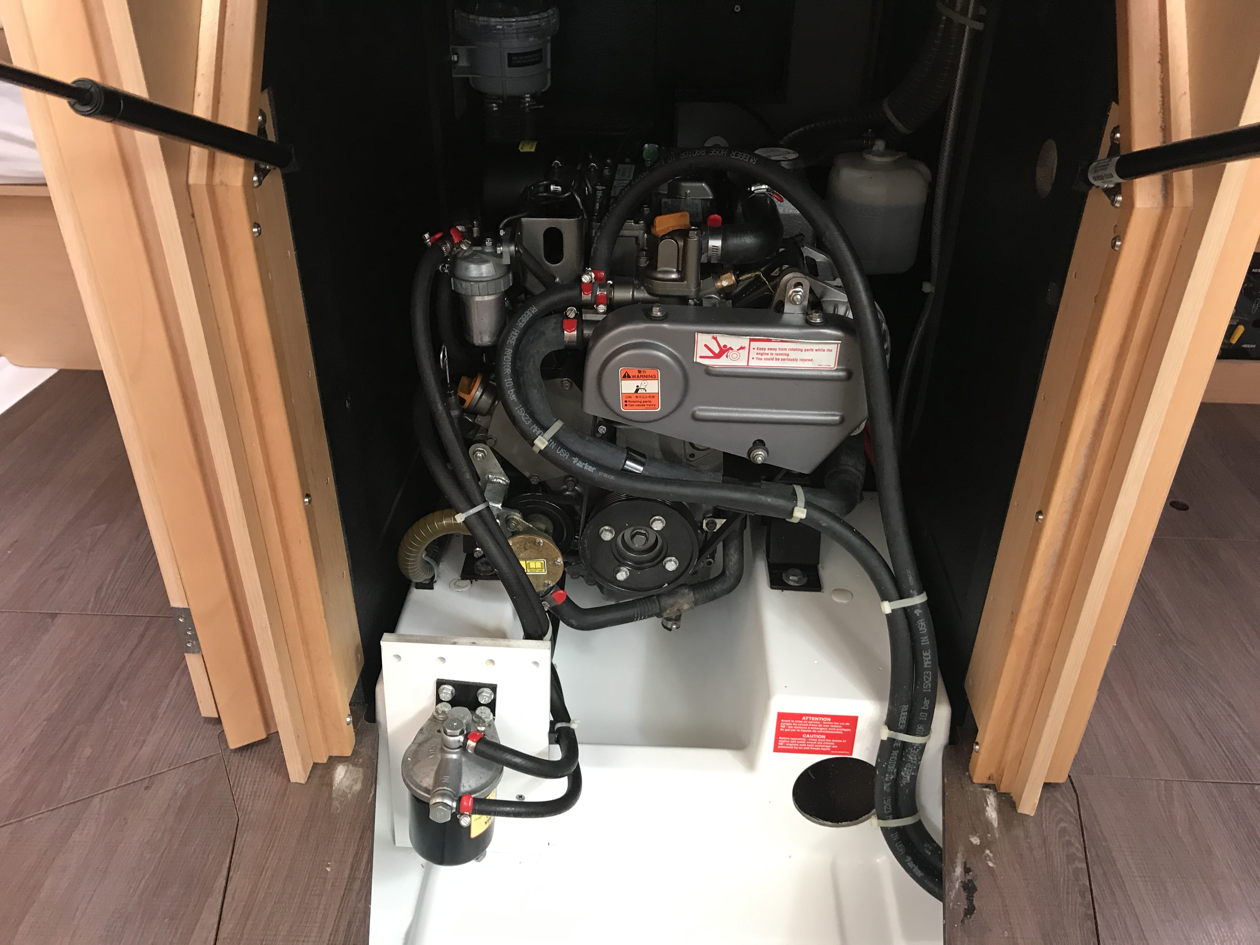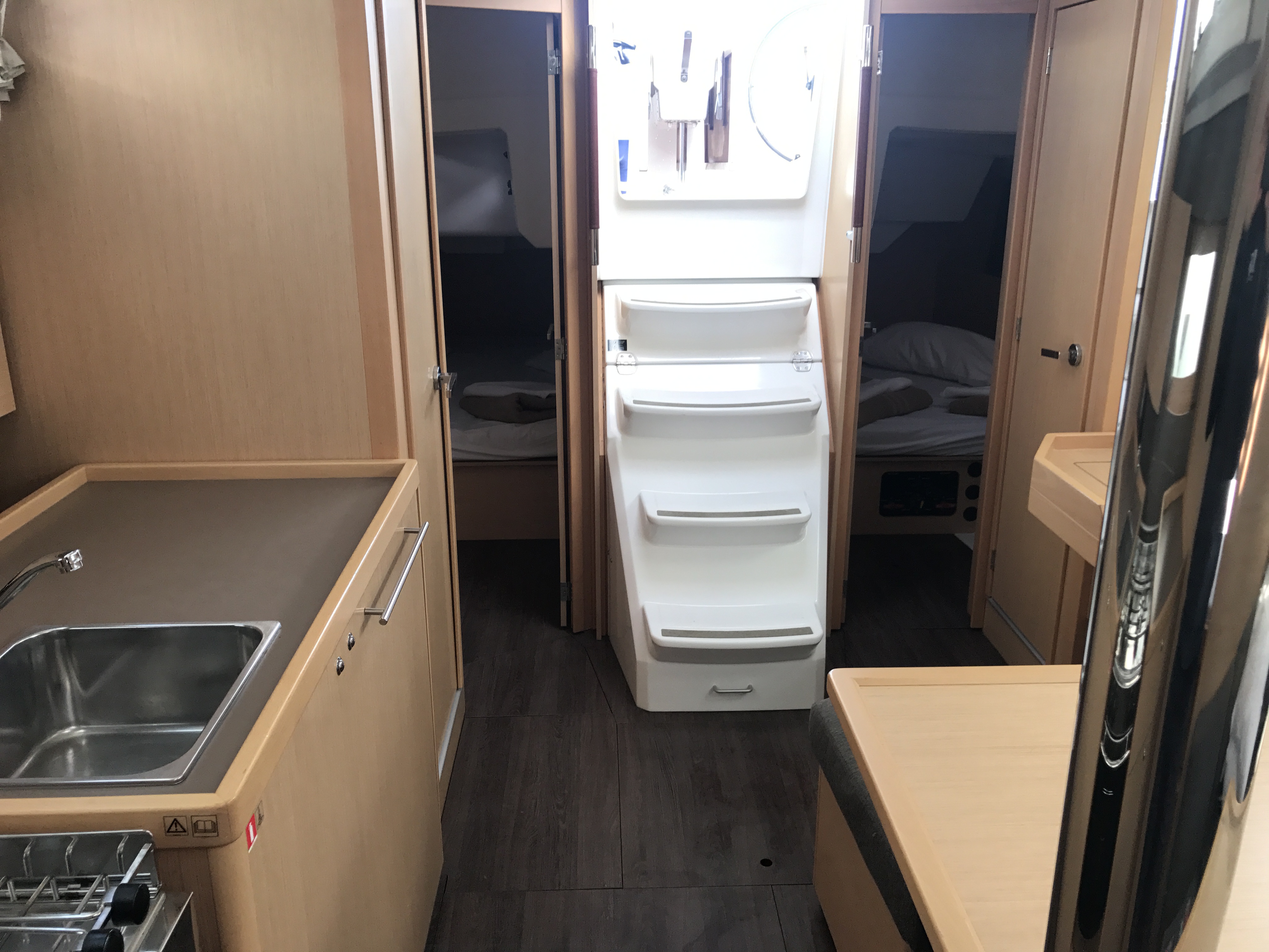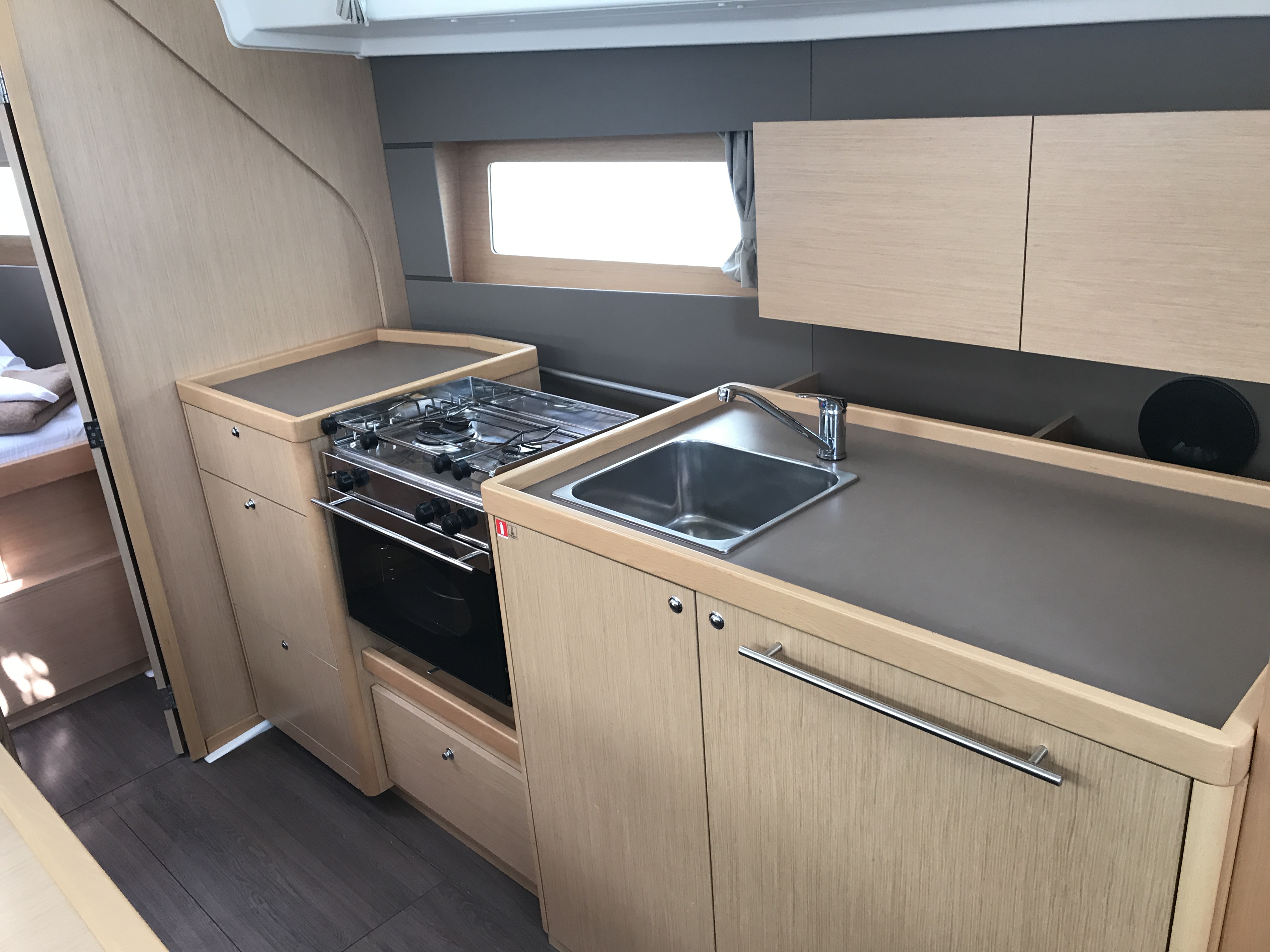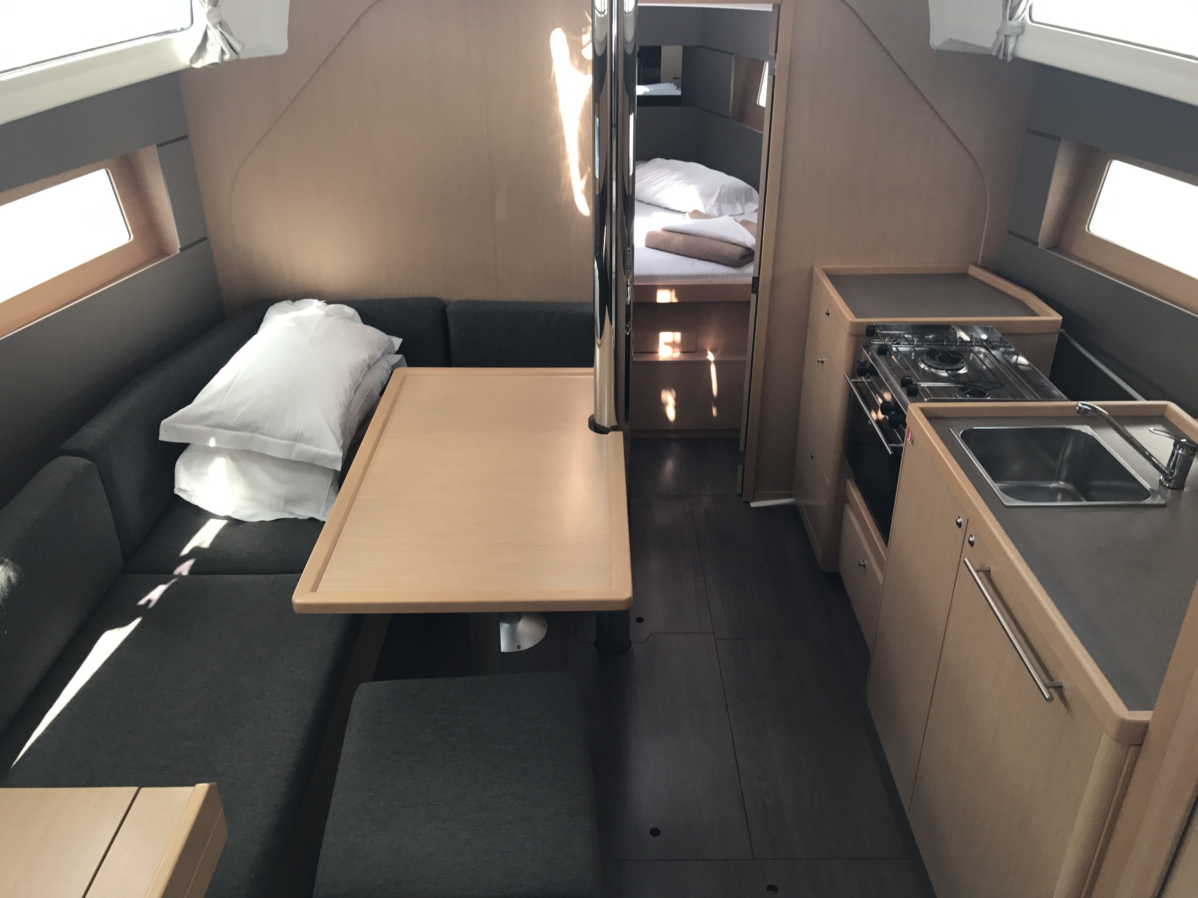 Autopilot, Auxiliary anchor, Auxiliary rudder, Biminitop, CD reader, Cockpit cushions, Cutlery, Dinghy, Distress flaires, Electric fridge, Electric toilets, Electric Winches, Electric windlass, Fire extinguishers, First aid kit, GPS + chart plotter, Life jackets, Liferaft, Shore power connection, Sprayhood, Steering wheel, Teak cockpit, VHF, Warm water, Wind instruments, Furling mainsail, Bow thruster, Cockpit Speakers