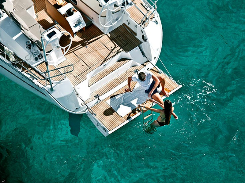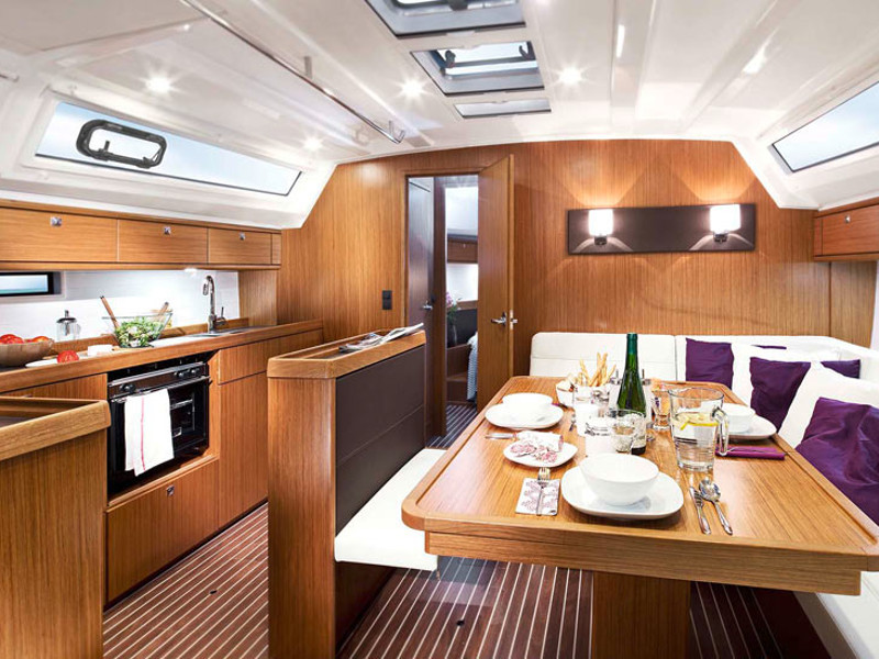 Autopilot, Bimini, Cockpit shower, Cockpit table, Electric windlass, Sprayhood, Tri data, WiFi modem, Coocking set, Kitchen set (paper towels, detergent, sponge), Plates, cups, glasses, cutlery, Gas bottle, Bow thruster, Hot water, Electrical instrument panel, GPS Chartplotter, Nautical charts, Pilot book, VHF, Yacht documents, Echo sounder, Life jackets, Pillows, blankets, bed linen, Furling genoa, Furling main sail, USB, Black water tank, Heating, Bathing platform
