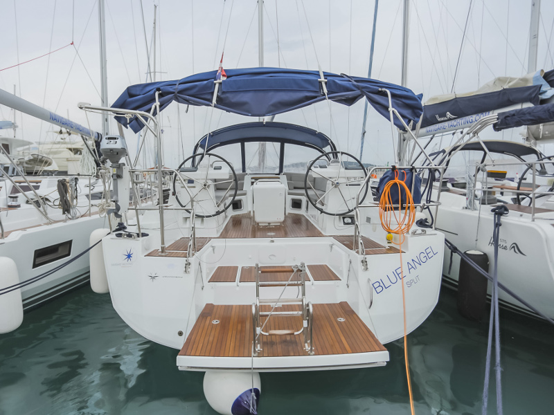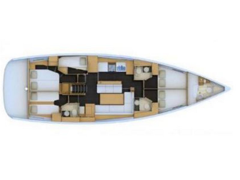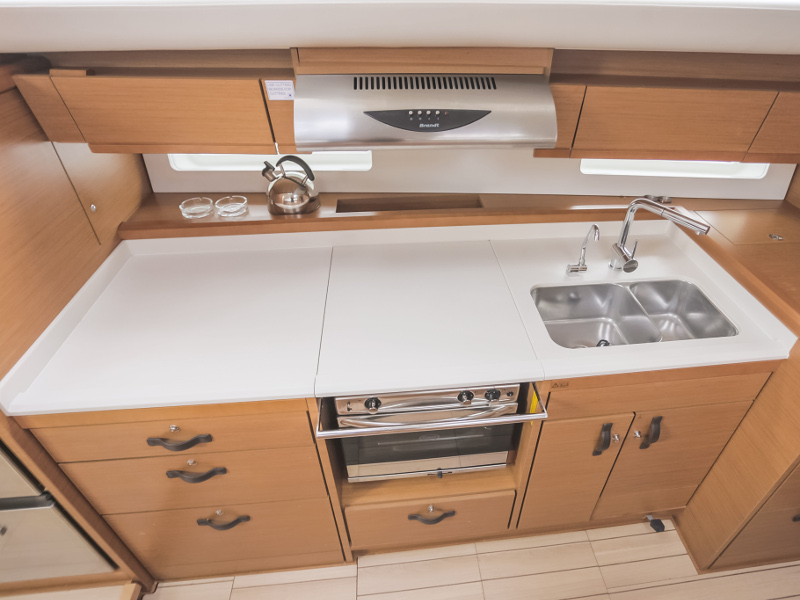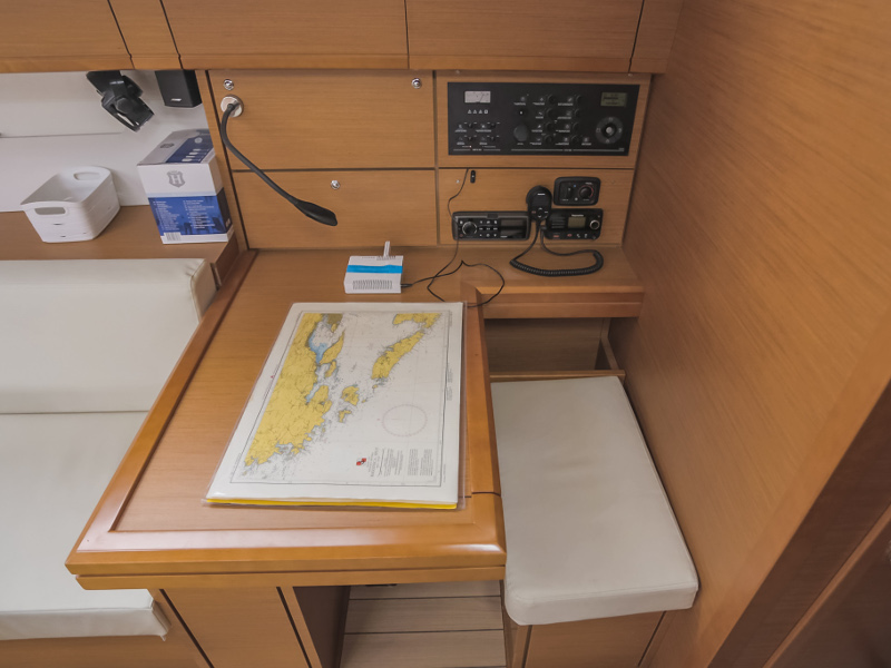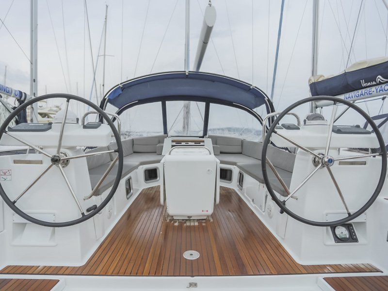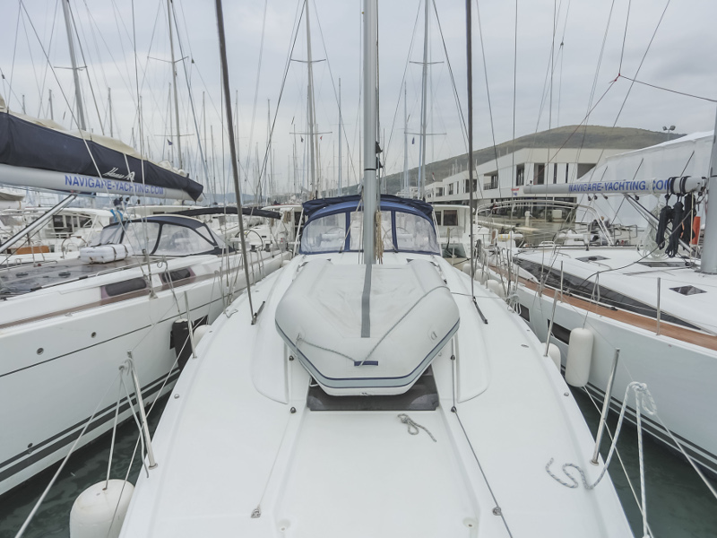 Bow thruster, Winches, Winches genoa sheet, Bimini top, Rail openings both sides, Sprayhood, Spring cleats, Teak deck, Teak on cockpit floor, Forward sundeck Pack, Terrace Pack, Furling Genoa, Furling main sail, Gennaker - optional, Autopilot, Mag. Compass, Tridata, Anchor with 80m chain, Cockpit speakers, Dinghy, DSC station, Electrical Windlass, Heating system, Outboard engine, Speakers in saloon, Steering , VHF station, Aft shower, Bathing ladders, Bathing platform, Cockpit table, Kitchen utensils, Additional fridge, Freezer, Gas cooker with oven, Refrigerator, Stove, Fresh water tanks & capacity, Water heater, 12/220V, 12V sockets, 220V sockets, Battery charger, LED Nav & interior lights, Shore supply, Holding tank, Engine, Service