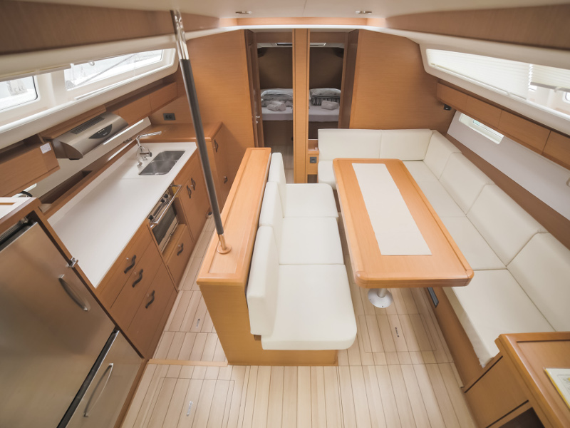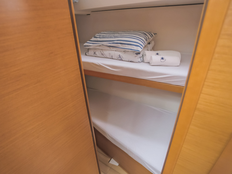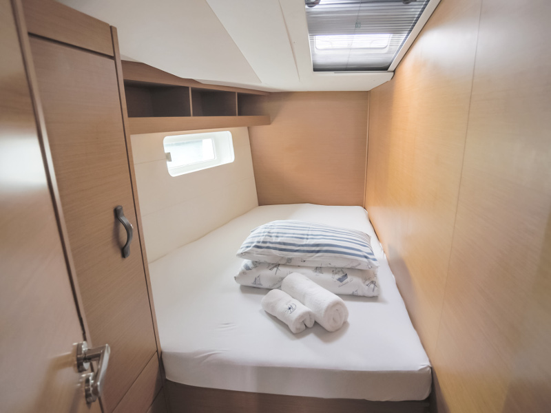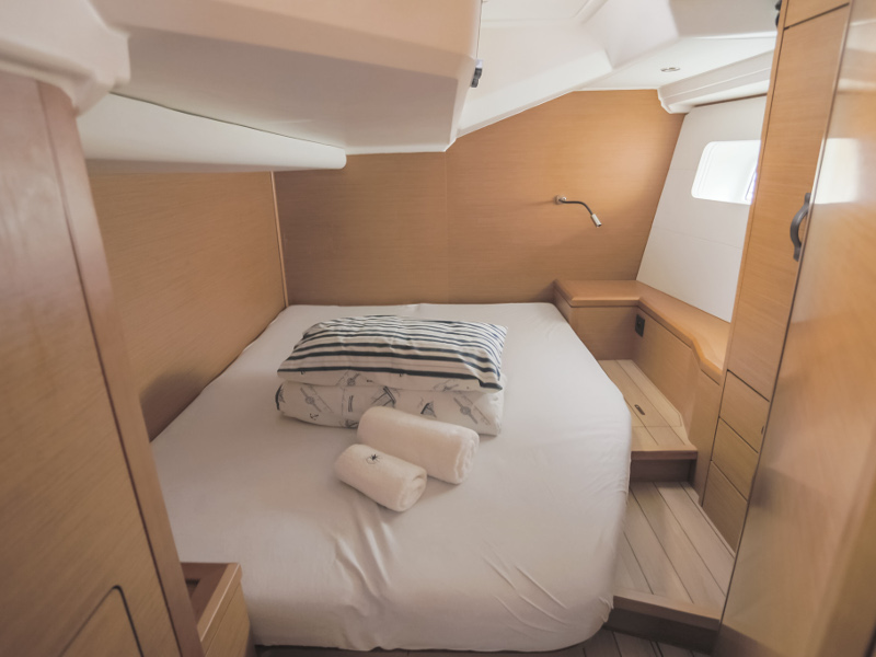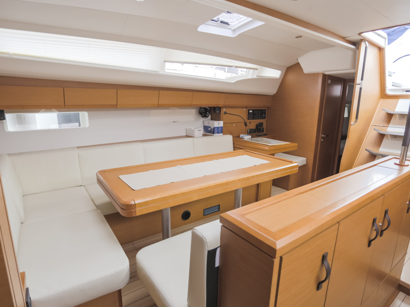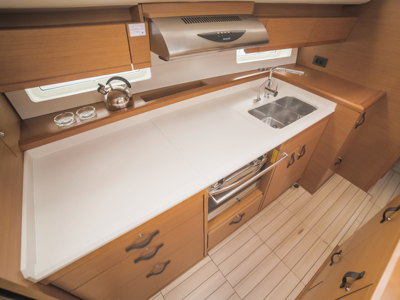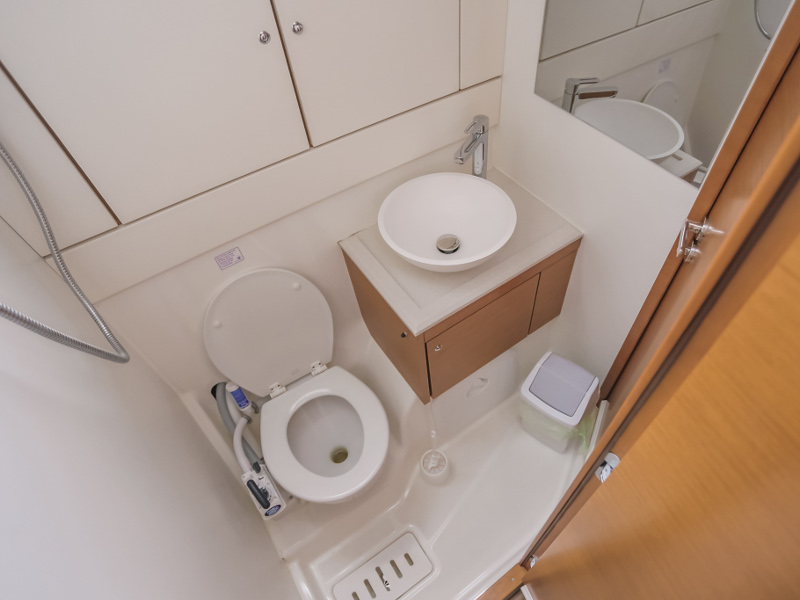 Bow thruster, Winches, Winches genoa sheet, Bimini top, Rail openings both sides, Sprayhood, Spring cleats, Teak deck, Teak on cockpit floor, Forward sundeck Pack, Terrace Pack, Furling Genoa, Furling main sail, Gennaker - optional, Autopilot, Mag. Compass, Tridata, Anchor with 80m chain, Cockpit speakers, Dinghy, DSC station, Electrical Windlass, Heating system, Outboard engine, Speakers in saloon, Steering , VHF station, Aft shower, Bathing ladders, Bathing platform, Cockpit table, Kitchen utensils, Additional fridge, Freezer, Gas cooker with oven, Refrigerator, Stove, Fresh water tanks & capacity, Water heater, 12/220V, 12V sockets, 220V sockets, Battery charger, LED Nav & interior lights, Shore supply, Holding tank, Engine, Service