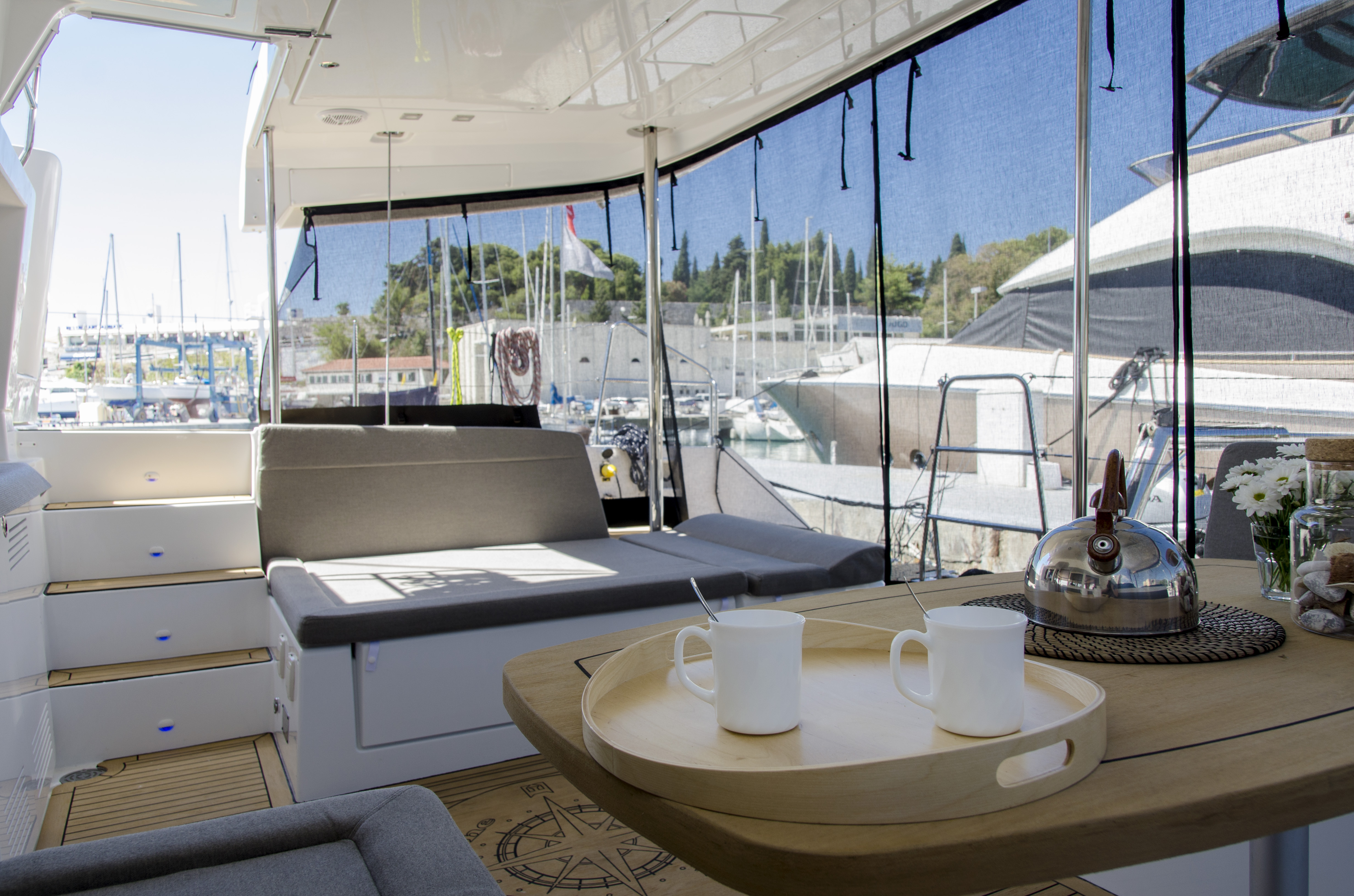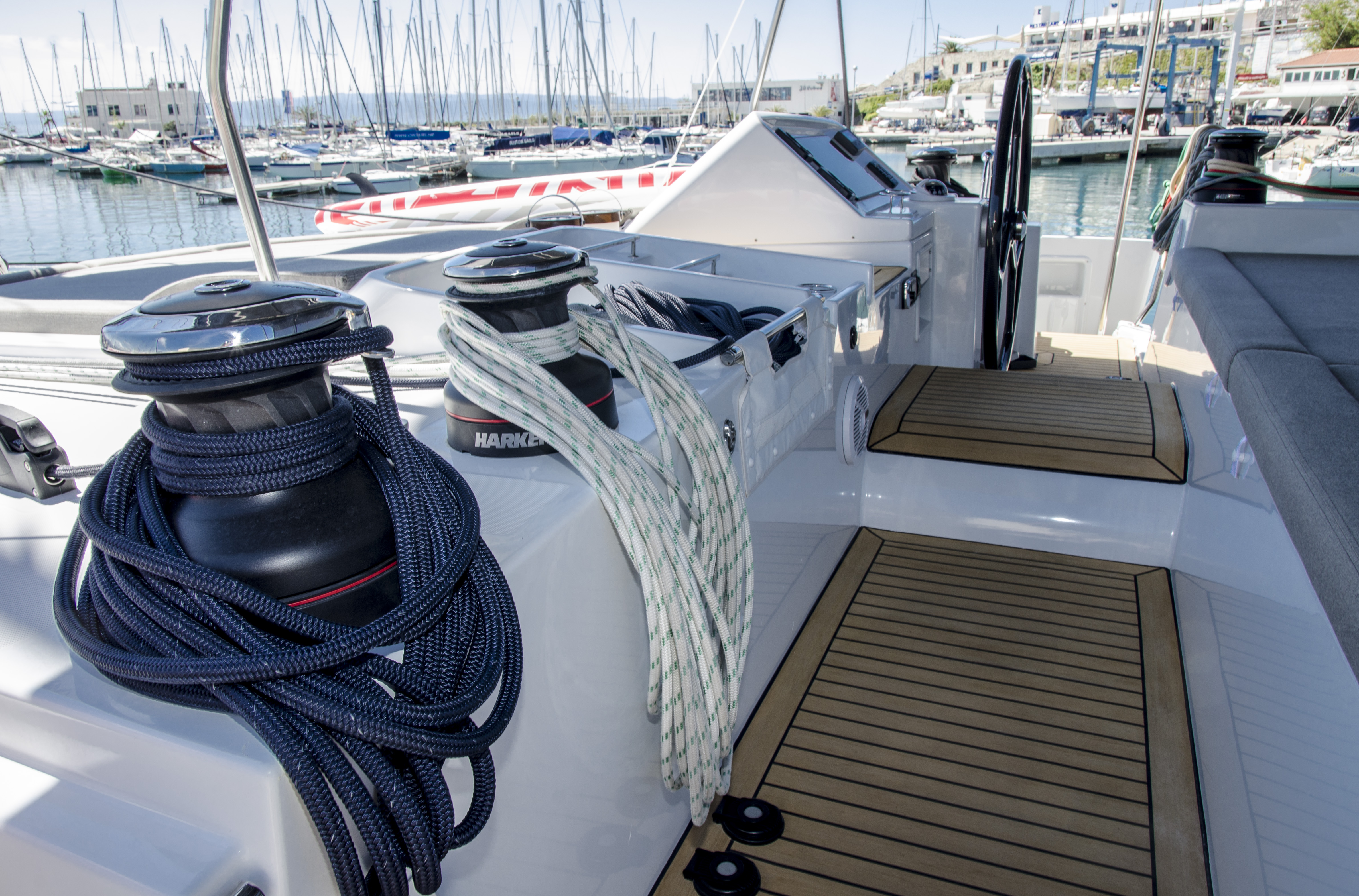 Dinghy Rigid, 220 V shore connection, battery charger, electrical toilet, Engine Battery (in Ah.), Generator, Service Battery (in Ah.), Cockpit Speakers, Radio/CD, TV + DVD, additional refrigerator in saloon, Cooker with oven, Cutlery, dishes, dishwashing machine, gas stove, icemaker, Microwave, refrigerator 130L, water heater, Autopilot, Chartplotter, Depth Gauge, depth sounder, GPS Chartplotter, Main Deck Compass, Radar, Air Conditioning, fans in cabins, Heating, Bimini, Cockpit Fridge, cockpit shower, Cushions in cockpit, Electric Windlass, XL Bimini top , Full batten Main Sail, Rollgenua, Bow Thruster, hand towels, Linen, Auxiliary anchor, Calibrated anchor chain, Dan Buoy, Distress flares, Fire extinguisher, First aid kit, Lifebuoy, Life jackets, Liferaft, Safety harness, Watermaker