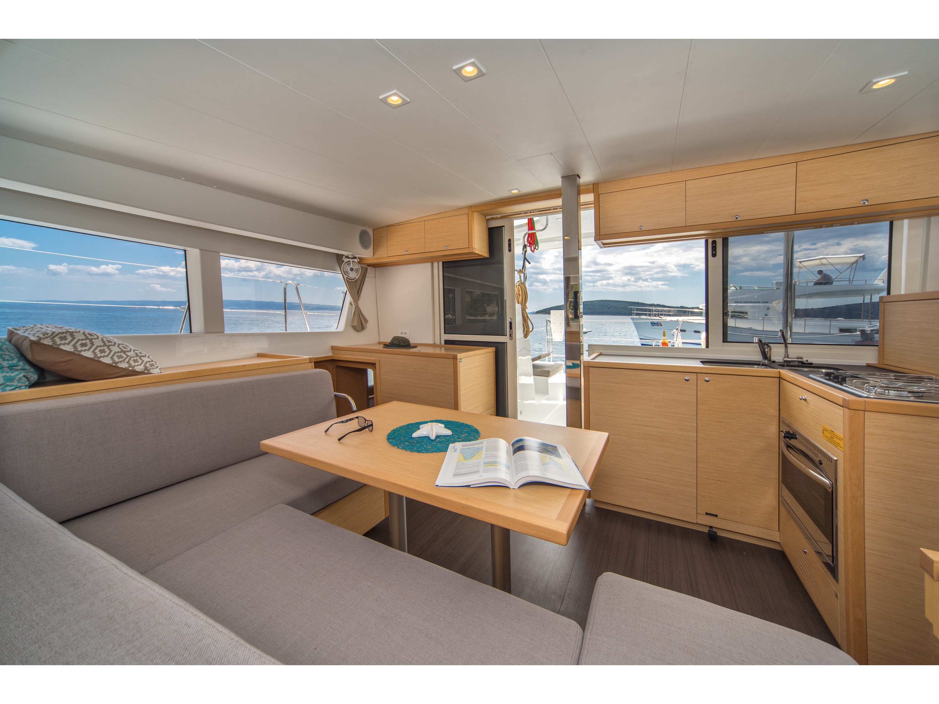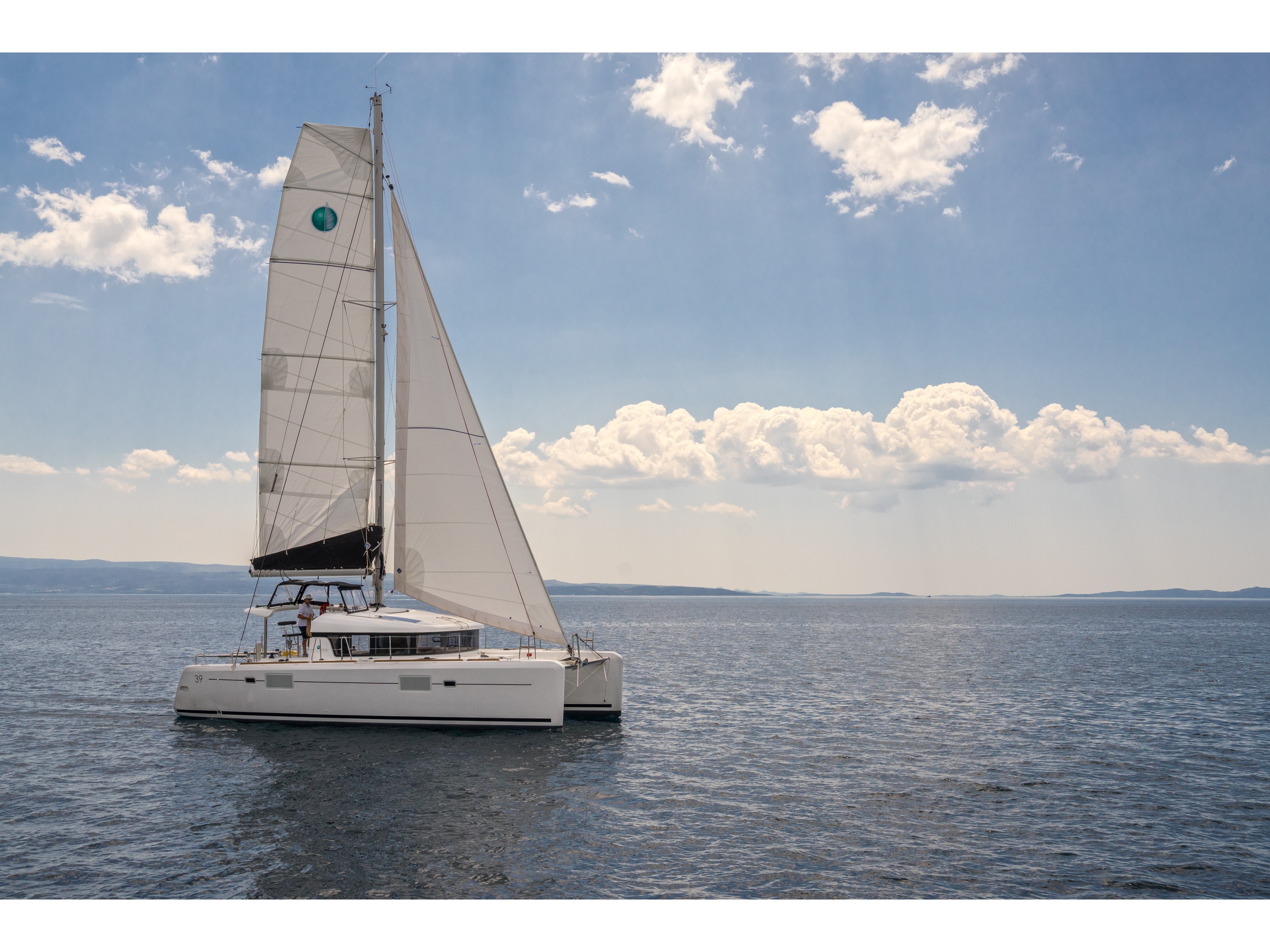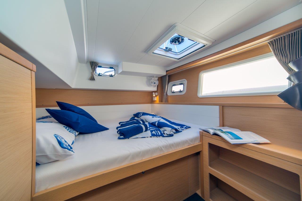 Dinghy Inflatable, 220 V shore connection, battery charger, Engine Battery (in Ah.), Service Battery (in Ah.), Shore Power Connection, Solar Panel, Cockpit Speakers, Fusion USB player, Refrigerator, Freezer, Cooker (num.), grill oven, Cutlery, dishes, Sinks, water heater, Autopilot, Chartplotter, depth sounder, GPS Chartplotter, Log/Speedo, Main Deck Compass, VHF, AIS 400 B & G tranciever with antenna, Hot Water System, Rollgenua, square top main sail, Bimini, cockpit shower, Cushions in cockpit, Electric Windlass, Auxiliary anchor, Calibrated anchor chain, Distress flares, Fire extinguisher, First aid kit, Lifebuoy, Life jackets, Safety harness, fans in cabins, fans in saloon, watermaker, Full batten Main Sail