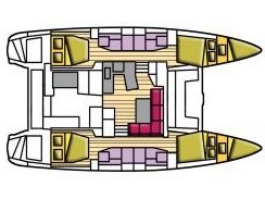 Air conditioning, Autopilot, Auxiliary anchor, Auxiliary rudder, Batten Mainsail, CD reader, Cockpit cushions, Cutlery, Dinghy, Distress flaires, Electric fridge, Electric toilets, Electric Winches, Electric windlass, Fire extinguishers, First aid kit, Fresh water maker, Generator, GPS + chart plotter, Inflatable life jackets, Inverter, Life jackets, Liferaft, Shore power connection, Teak cockpit, VHF, Warm water, Wind instruments, Cockpit Speakers, Water Maker