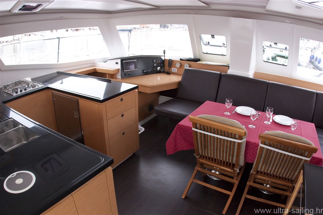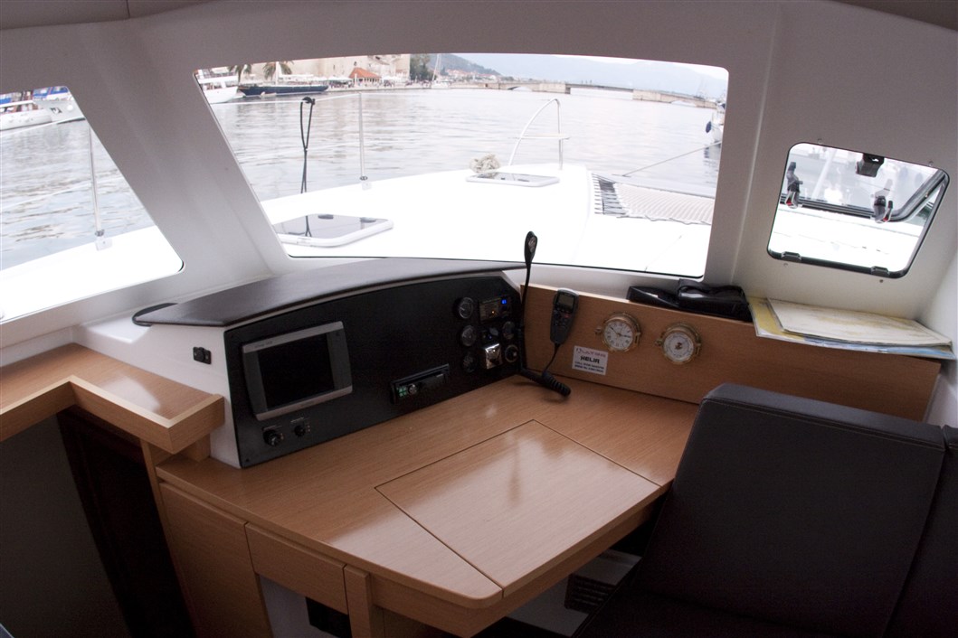 Furling genoa, Anchor, Bimini, Cockpit speakers, Cockpit table, Electric windlass, Helm, Stern shower, Autopilot, Battery charger, Compass, FM radio/USB connection, GPS charter plotter, Navigation charts, Pilot book, Shore power 220V, VHF, Wind instruments, Dinghy, Electric bilge pump, Emergency signals, Fire extinguishers, First aid set, Fog horn, Life belts, Life jackets, Manual bilge pump, Outboar engine - extra, bed linen, Fridge, Gas bottles, Hot water, Kitchen utensils, Small towels 50X70cm, Stove/oven, Lazy bag, Air condition , Electric winch, TV, Sink(C/W water), Boat hook, Baloon fender - aft, Chain and rope for spare anchor, Fenders, Gangway, Axe, Binoculars, Floating smoke signal, Solar pannels, Heating , Full batten main sail