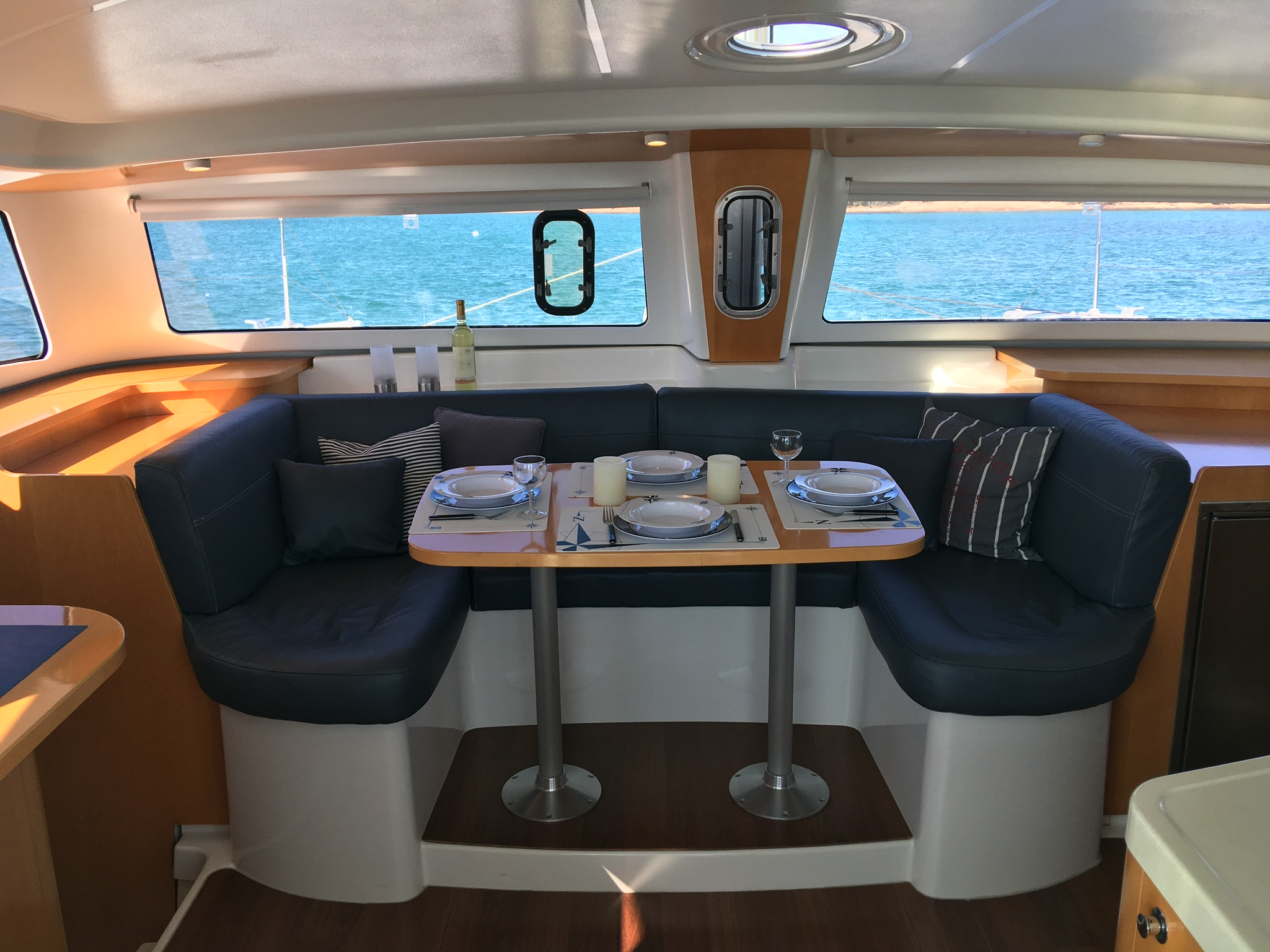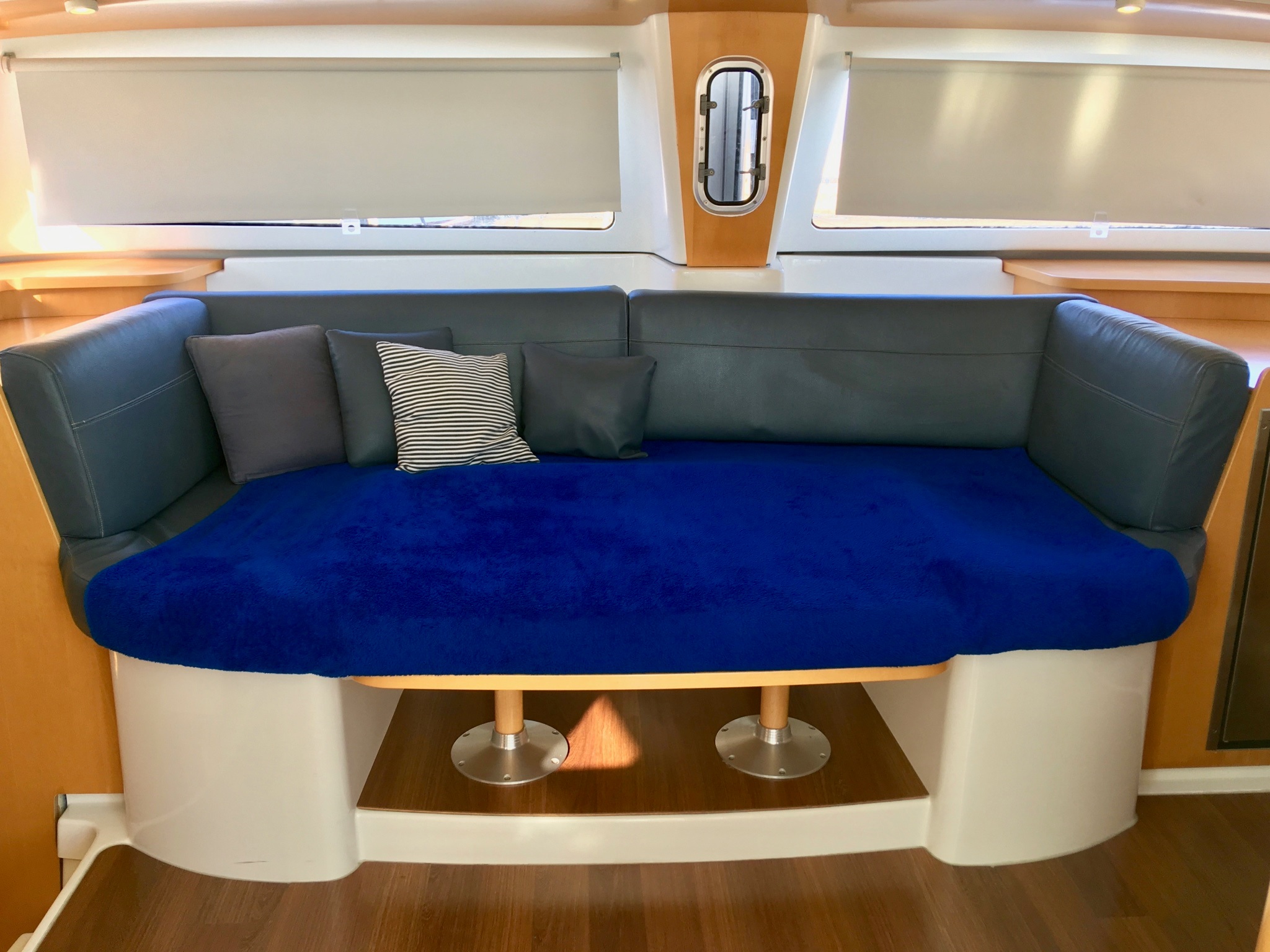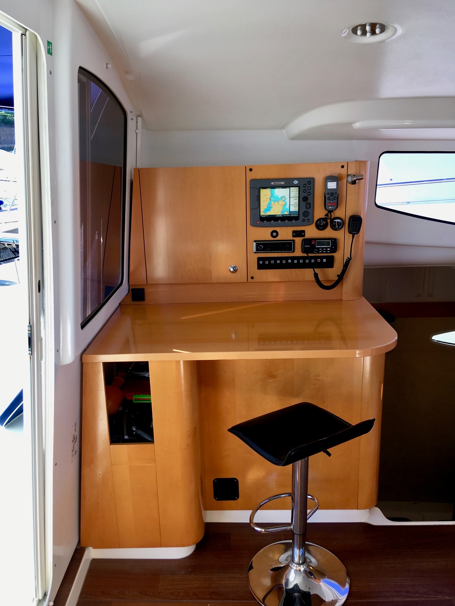 Convertible dinette, Full batten main sail, Solar Panel 100W, Full batten Main Sail, Autopilot, Bimini, Dinghy Inflatable, Echo Sounder, Electric Windlass, Genoa Furling, GPS Chartplotter, Hot Water System, Radio/CD, Bosuns chair, Box of flares, Emergency tiller, First aid kit, Flashlight, Floating light, Life belts, Life jackets, Life preserver, Liferaft, Navigation lights, Sea anchor, VHF, Barometer, Binoculars, Clock, Flag QNC, Hand bearing compass, List of lights, Main compass, Pilot book, Sea charts, Shortwave radio, Windex, Deck Shower, Refrigerator, 12 volt socket, 220 volt socket, Battery charger, Cockpit table, Electric bildge pump, Gangway, Onboard tools, Ships licence, Galley equipment, Gas bottle, Gas cooker, Depth sounder, Wind Speed, Holding tank