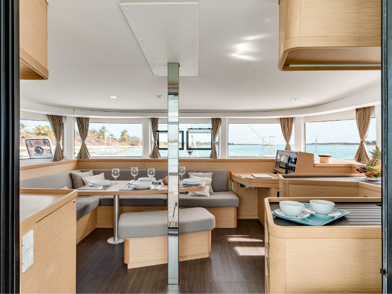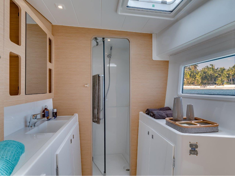 bow thruster, icemaker, gas stove, 220 V shore conn., air condition, autopilot, battery charger, bedlinen & towels, bilge pump (electric/manual/flush), bimini top, CD player, cockpit cushions, cockpit speakers, cockpit table, coffee maker, compass, dinghy, electric anchor winch, electrical refrigerator, freezer, galley equipment, gangway, generator, GPS chart plotter, heating, holding tank, hot water, life raft, microwave oven, nautical charts & pilot book, electrical toilets, safety equipement, sprayhood, steering wheel, stern shower, teak cokpit, tridata, TV, VHF radio, VPN base phone, Wi-fi