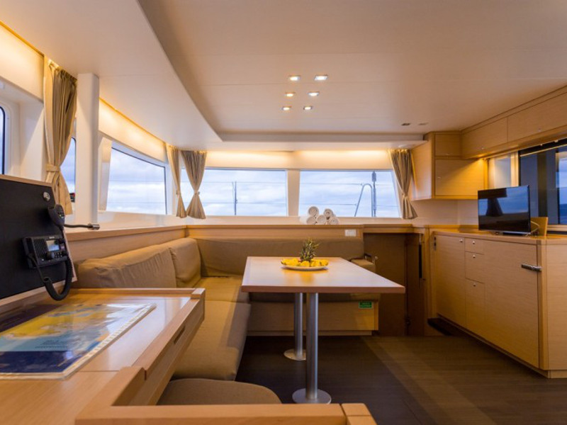 Full batten main sail, Furling genoa, Carbon gangway, Large bimini on flybridge, Teak cockpit, Air Condition, Bed linen & towels, El. refrigerator, Galley equipment, Generator, Hot water, Ice maker, Music system, Smart TV, Autopilot , Chart, GPS, Life raft, Multi instruments , Plotter VHF, Radio, Dinghy, Donut, Kayak, Kneeboard, Snorkelling set, Stand up paddle board