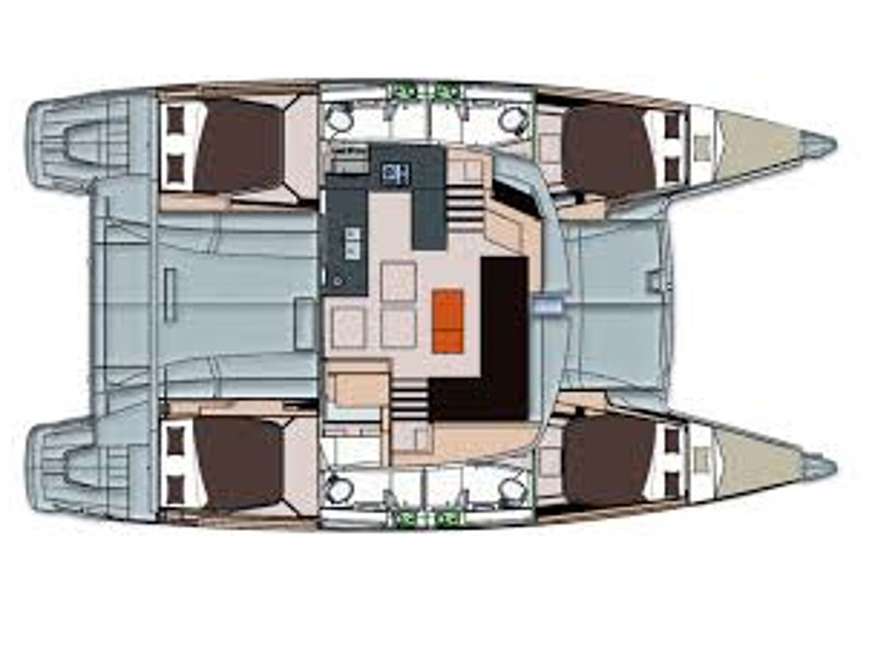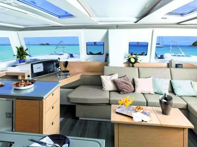 Electric windlass, 4-burner stainless steel hob, Autopilot, Bimini, Converter, Davits, Deck shower hot and cold water, Electric winch, Furling Genoa, Gas grill oven, GPS plotter, HIFI Radio CD MP3 USB and auxiliary connection, Holding tank, Hot and cold water, Lazy bag, Nautical documents and maps for the region, Radar, Refrigerator, VHF, Cockpit refrigerator, Lounge deck, Mosquito nets, Solar panels