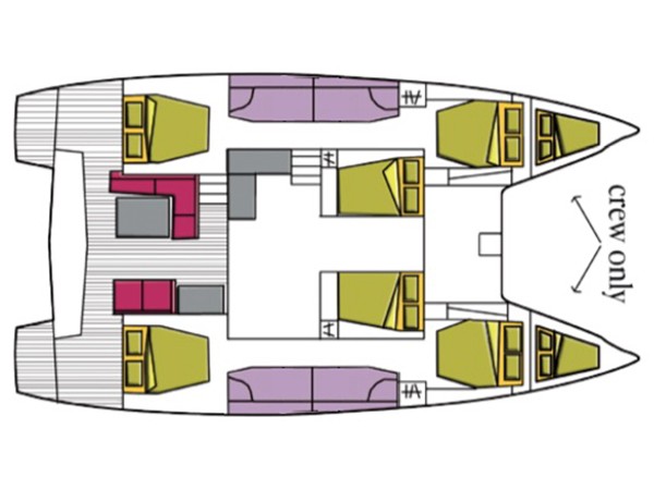 Air conditioning, Autopilot, Auxiliary anchor, Auxiliary rudder, Batten Mainsail, CD reader, Cockpit cushions, Cutlery, Dinghy, Distress flaires, Electric fridge, Electric toilets, Electric Winches, Electric windlass, Fire extinguishers, First aid kit, Fresh water maker, Generator, GPS + chart plotter, Inflatable life jackets, Inverter, Lazy Jack, Life jackets, Liferaft, Shore power connection, Teak cockpit, VHF, Warm water, Wind instruments, Cockpit Speakers, Water Maker